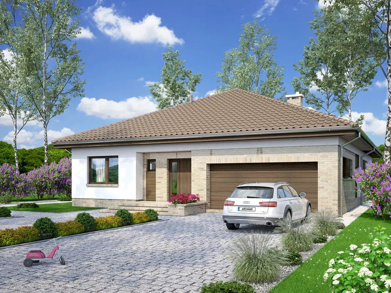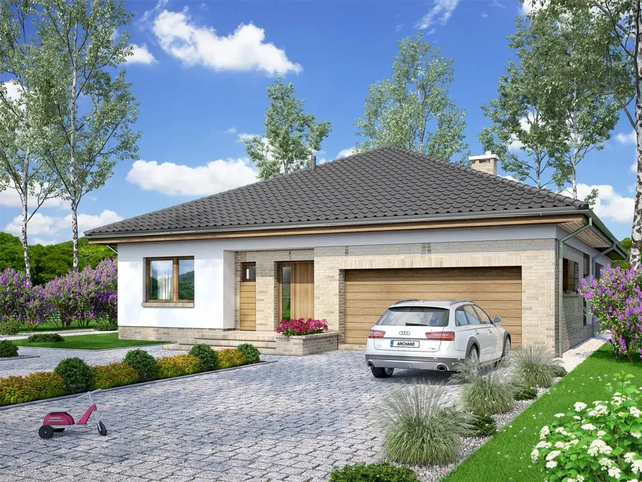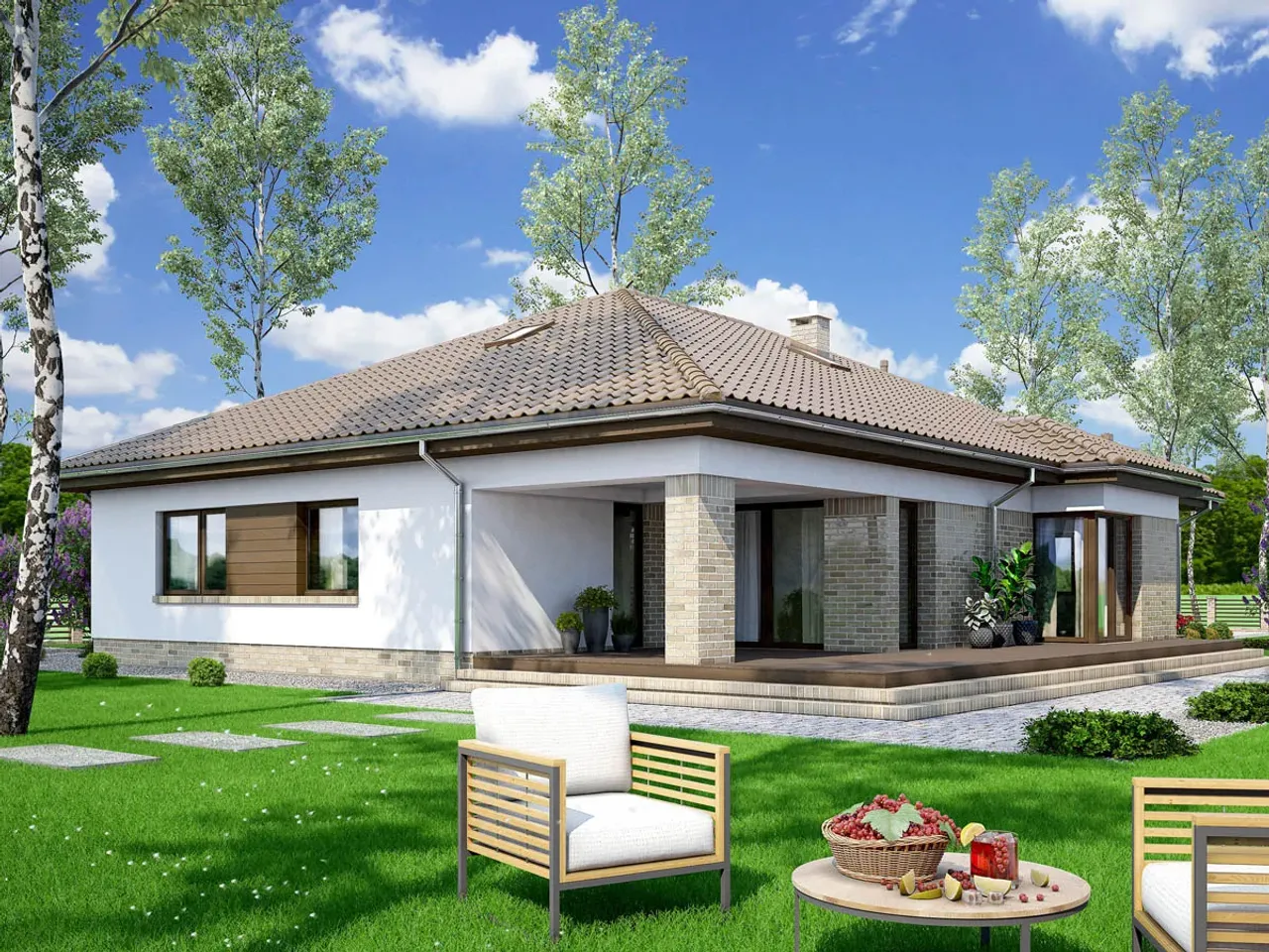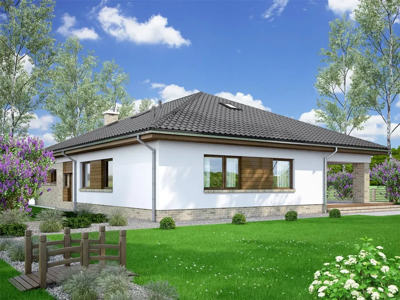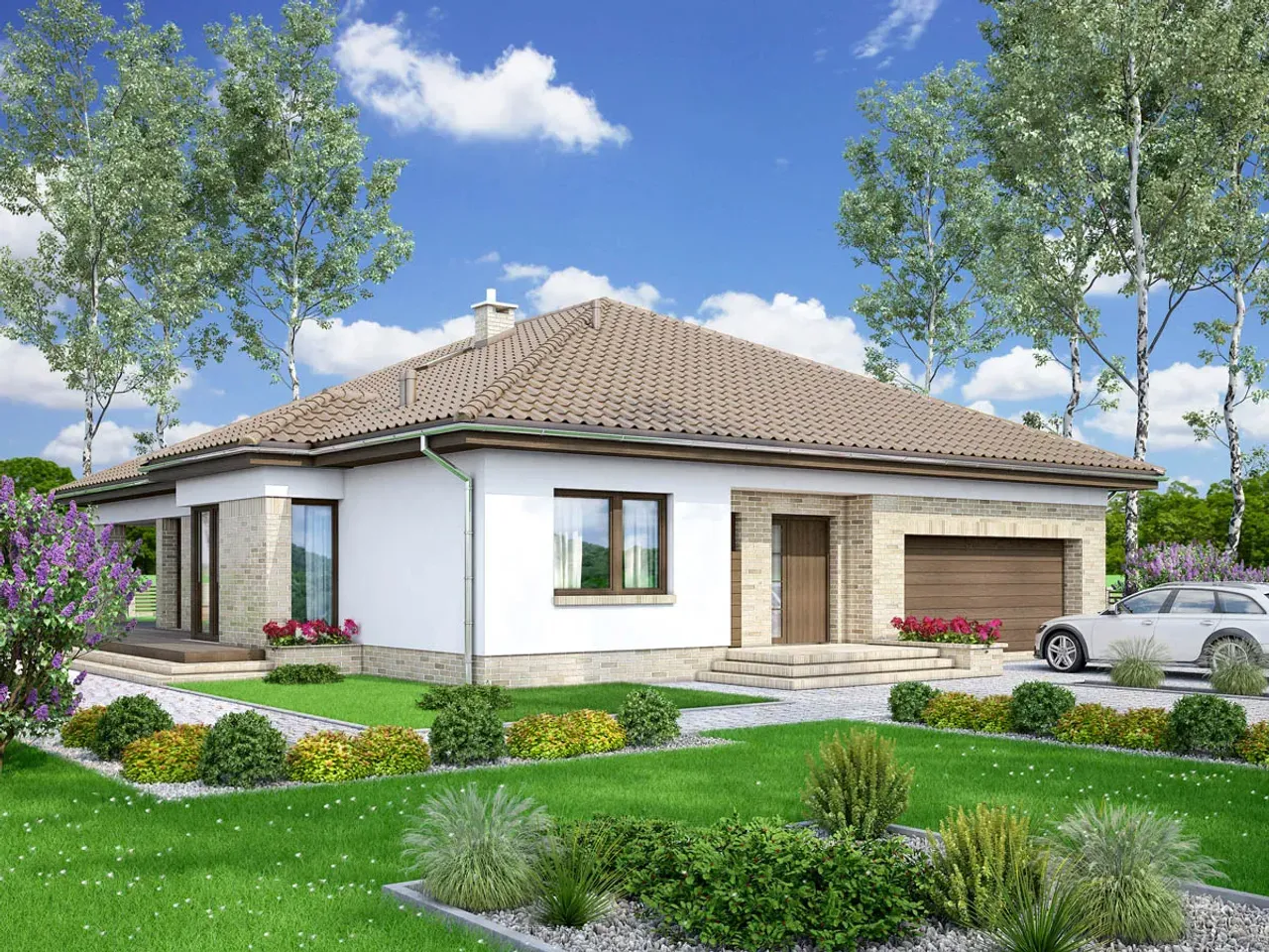 Dom Kalwados 2 bazuje na trwałej, murowanej konstrukcji i imponuje wielospadowym dachem oraz czytelnym podziałem stref. Pomyśl, jak wygodnie będzie przechowywać samochody w dużym garażu, a chłodne wieczory spędzać przy kominku. Ten projekt to propozycja dla osób, które cenią wygodę i nowoczesność w każdym detalu.