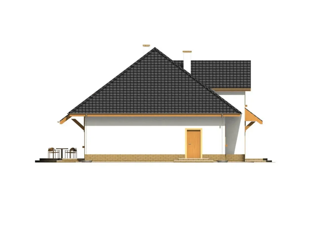 Projekt domu Kasia to bardzo ładny dom o prostej bryle z dachem wielospadowym. Istnieje wersja domu z jedno lub dwustanowiskowym garażem oraz z dwuspadowym dachem. Układ funkcjonalny projektu domu Kasia jest bardzo przestronny. Na parterze znajduje się duży salon kominkowy z otwartą kuchnią i jadalnią. Ponadto mieści się tutaj także wiatrołap, kotłownia z pomieszczeniem gospodarczym, hall, spiżarnia oraz pokój gościnny mogący pełnić również funkcję gabinetu. Na poddaszu znajdują się trzy sypialnie, w tym dwie posiadające własne garderoby i duża łazienka.