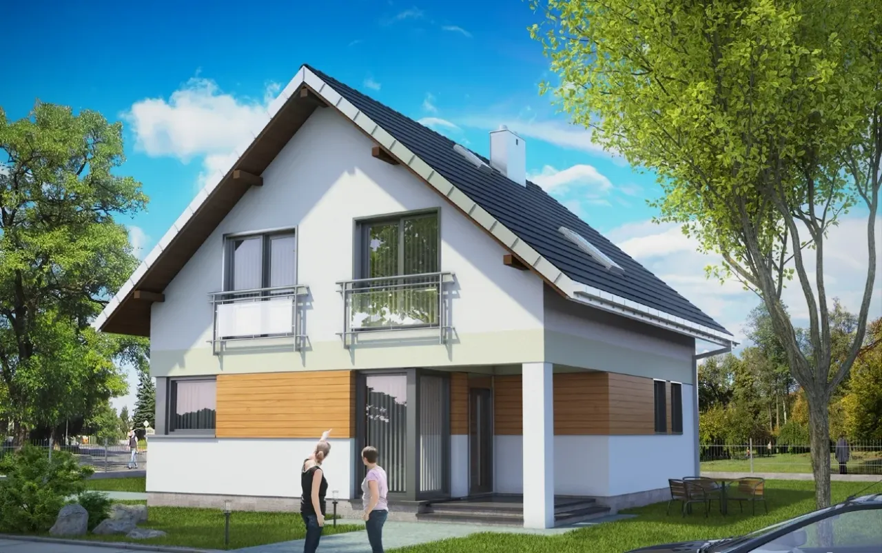 Projekt domu Katia wyróżnia się nowoczesną i interesująca bryłą, która na pewno przyciągnie wzrok wielu gości. Przemyślany podział przestrzeni pokoje dziennego i nocnego oferuje komfort i prywatność dla wszystkich domowników. Ciekawym dodatkiem jest duża ilość miejsca garażowego, co jest wyjątkowo praktyczne.