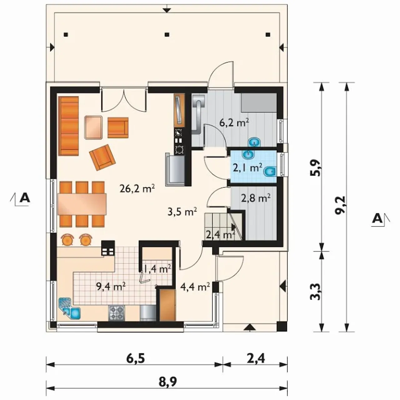 Szerokość budynku 8.9 m |