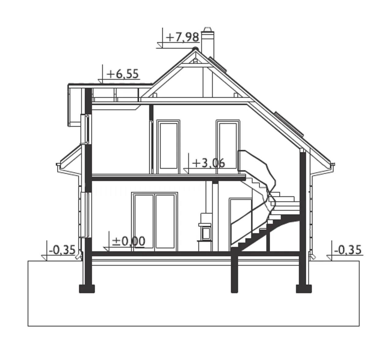 - przekroje - pokazują wszystkie elementy budynku po przecięciu go wzdłuż lub w poprzek od dachu do fundamentów tj. warstwy podłogi, stropów i dachu