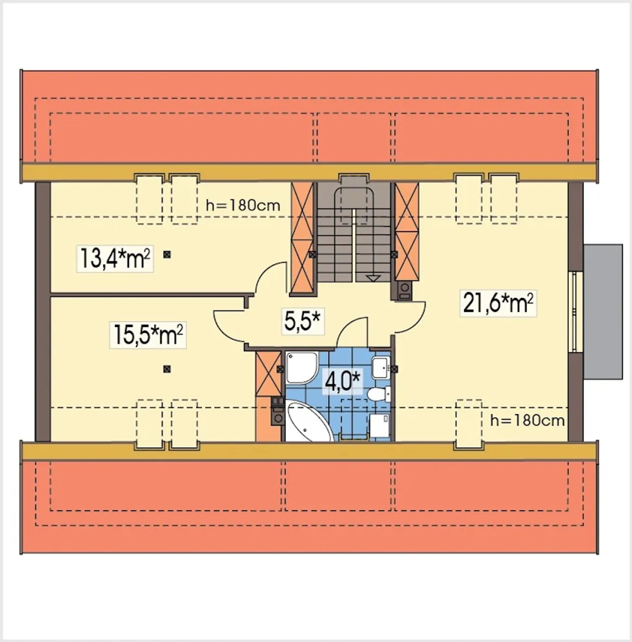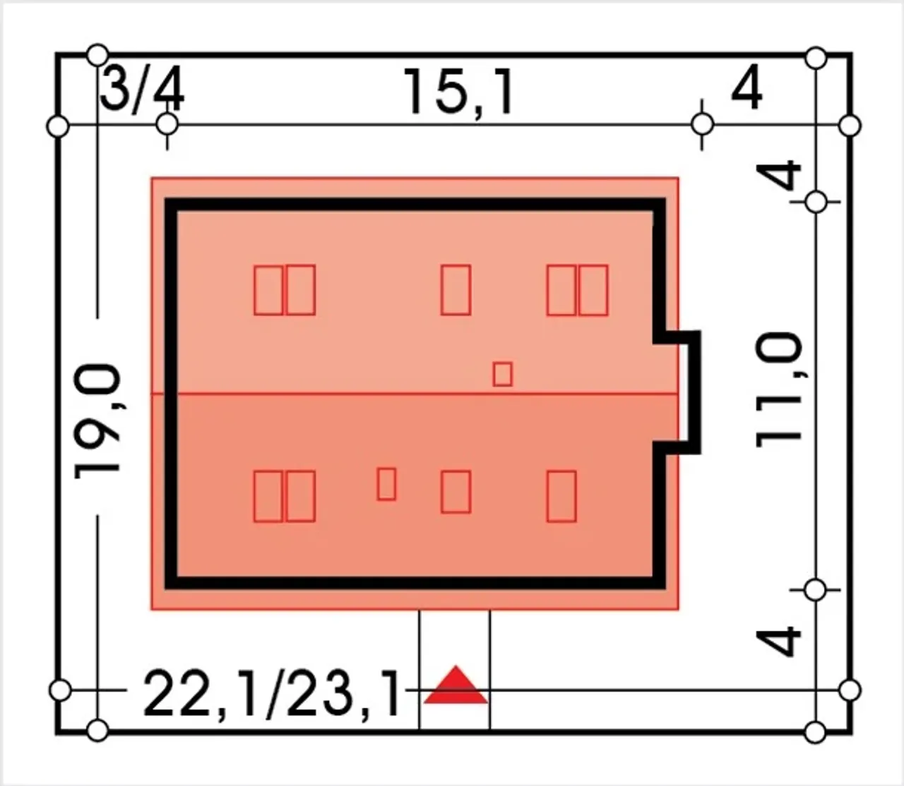 Wypełnij formularz i otrzymaj rysunki w pdf z dokładnymi wymiarami budynku i pomieszczeń (długość, szerokość, wysokość) dla projektu Katia wersja B
