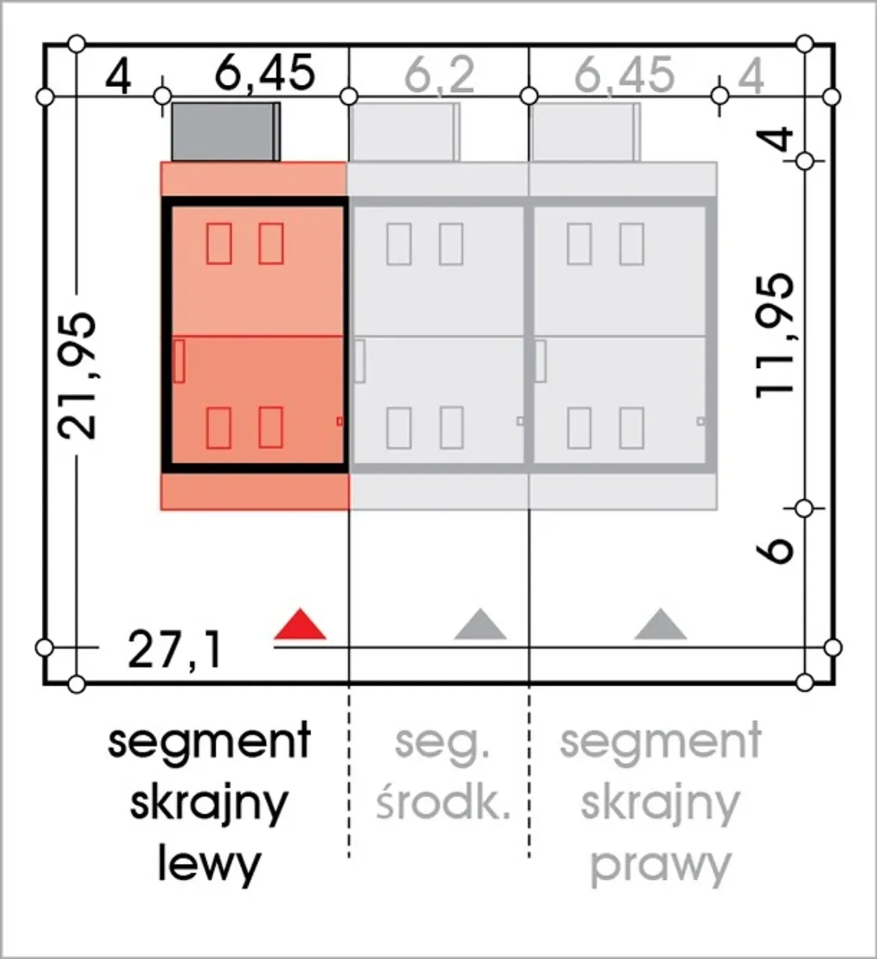 Wypełnij formularz i otrzymaj rysunki w pdf z dokładnymi wymiarami budynku i pomieszczeń (długość, szerokość, wysokość) dla projektu Katrina Gold segment skrajny lewy