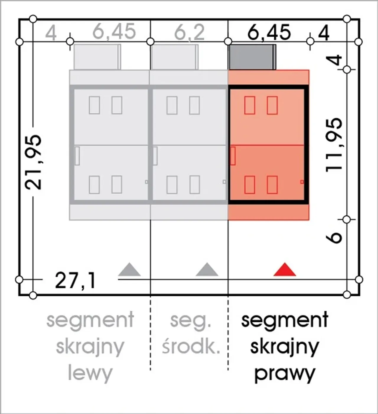 Wypełnij formularz i otrzymaj rysunki w pdf z dokładnymi wymiarami budynku i pomieszczeń (długość, szerokość, wysokość) dla projektu Katrina Gold segment skrajny prawy