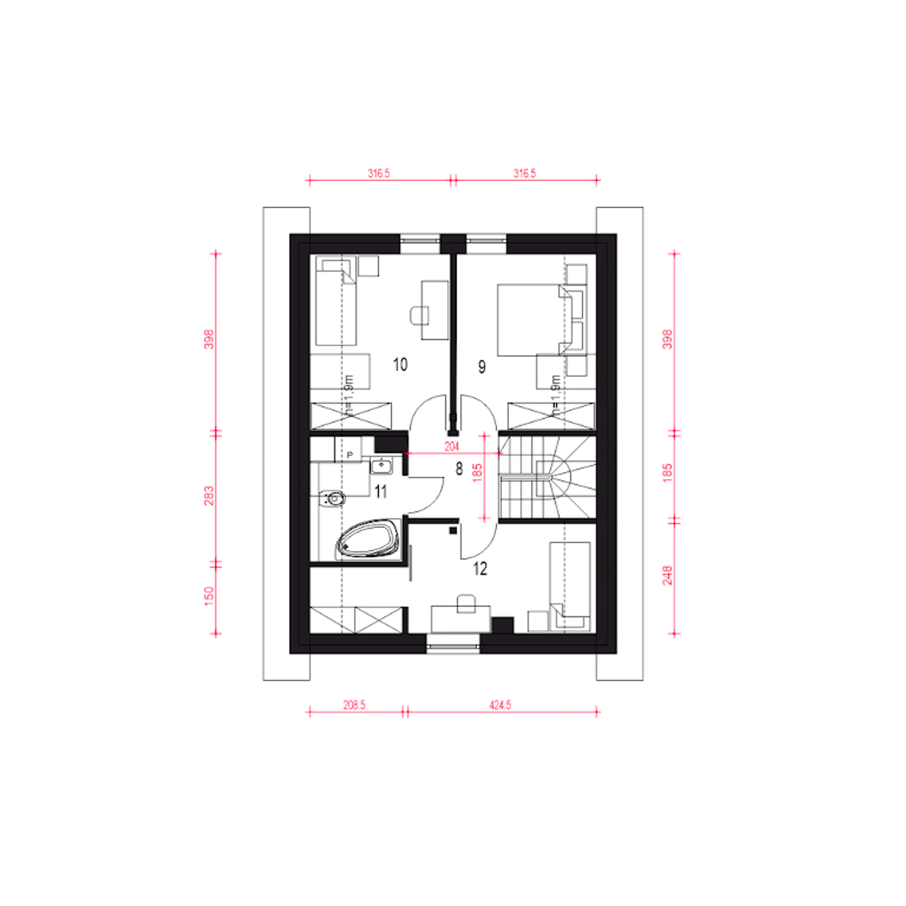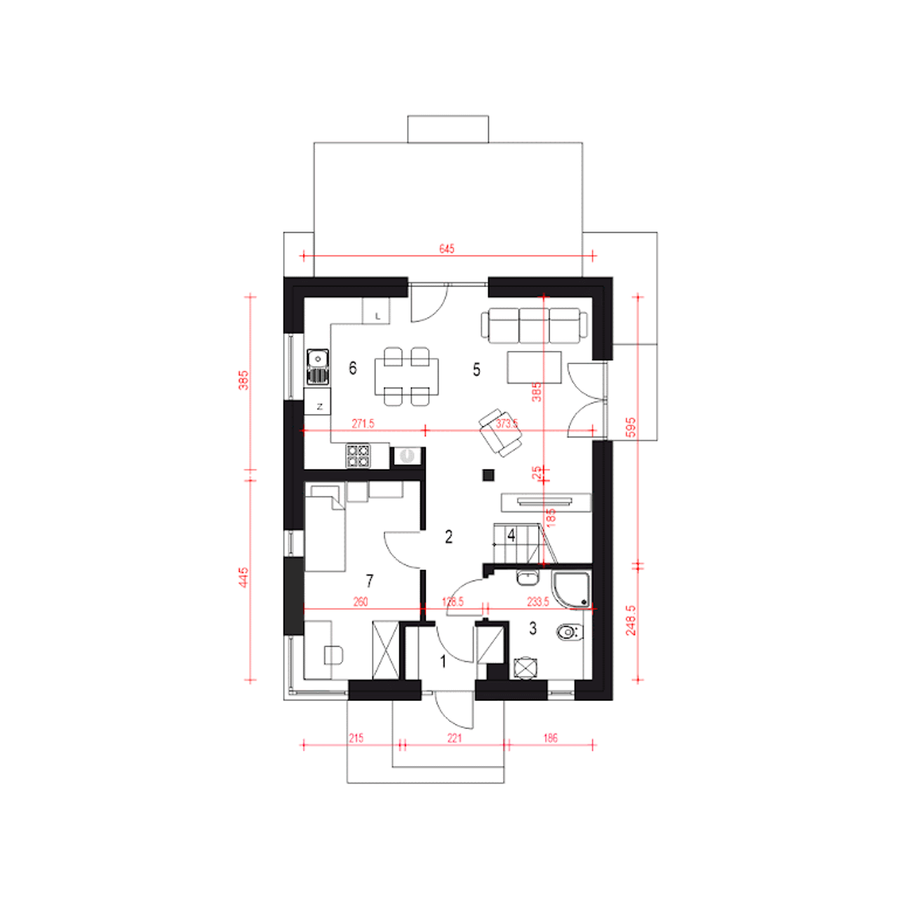 Wypełnij formularz i otrzymaj rysunki w pdf z dokładnymi wymiarami budynku i pomieszczeń (długość, szerokość, wysokość) dla projektu Kiwi bez garażu B