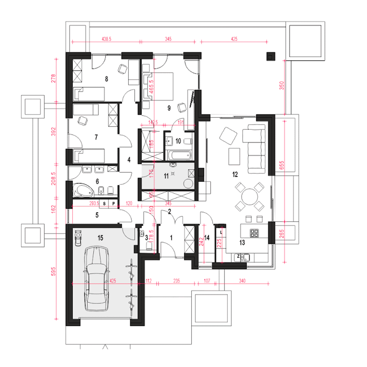 Wypełnij formularz i otrzymaj rysunki w pdf z dokładnymi wymiarami budynku i pomieszczeń (długość, szerokość, wysokość) dla projektu Klara III z garażem 1-st. A