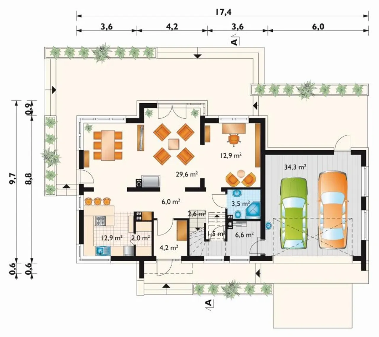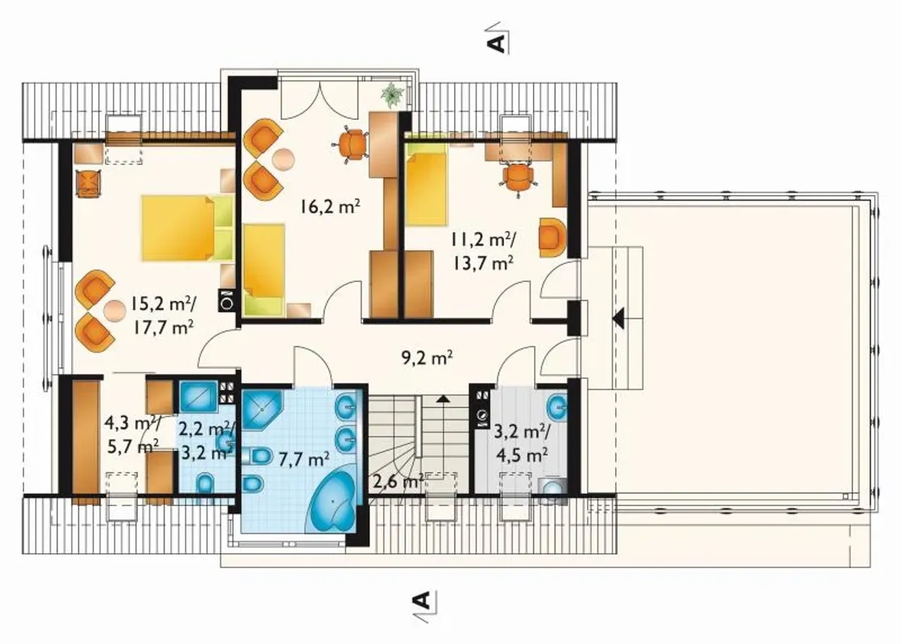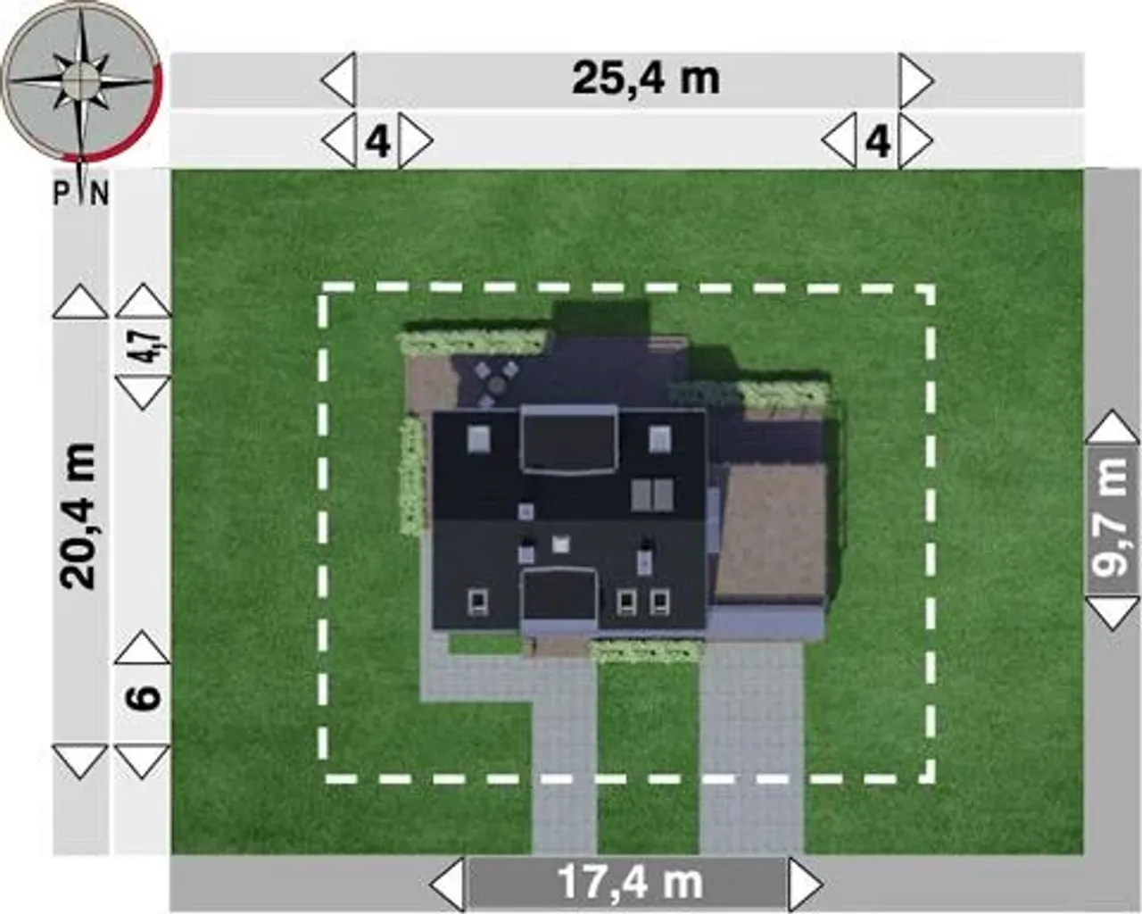 - elewacje - pokazują dokładny wygląd domu od frontu, z tyłu i z boków