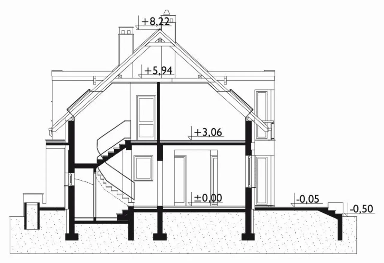 - przekroje - pokazują wszystkie elementy budynku po przecięciu go wzdłuż lub w poprzek od dachu do fundamentów tj. warstwy podłogi, stropów i dachu