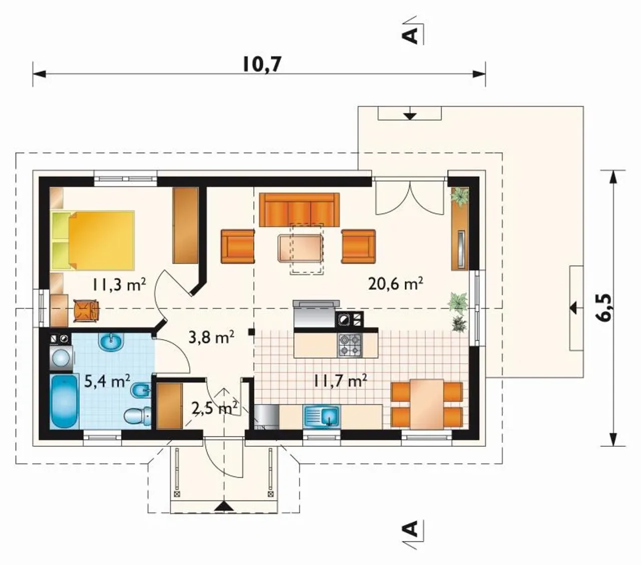 - elewacje - pokazują dokładny wygląd domu od frontu, z tyłu i z boków