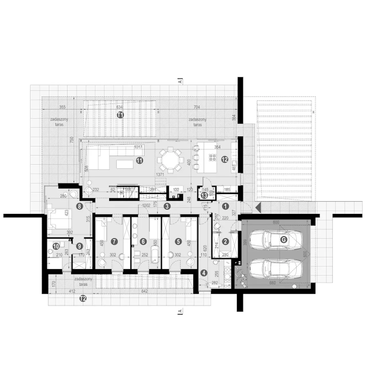 Wypełnij formularz i otrzymaj rysunki w pdf z dokładnymi wymiarami budynku i pomieszczeń (długość, szerokość, wysokość) dla projektu HomeKoncept 112 G2 wariant 02
