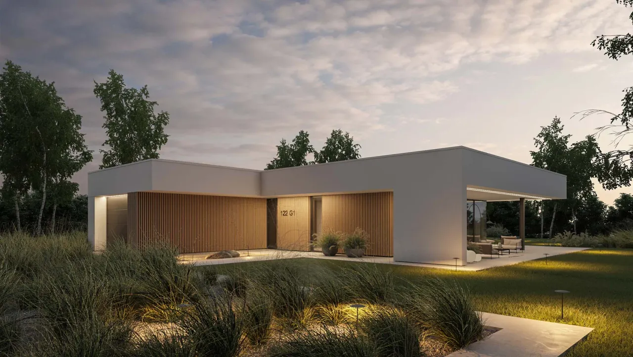 Wypełnij formularz i otrzymaj rysunki w pdf z dokładnymi wymiarami budynku i pomieszczeń (długość, szerokość, wysokość) dla projektu HomeKoncept 122 G1