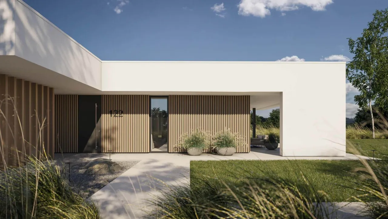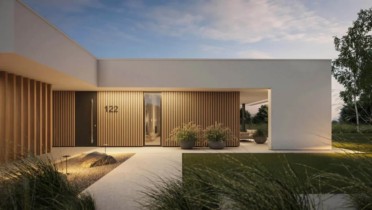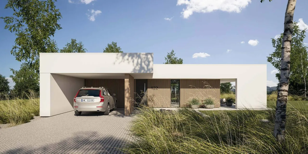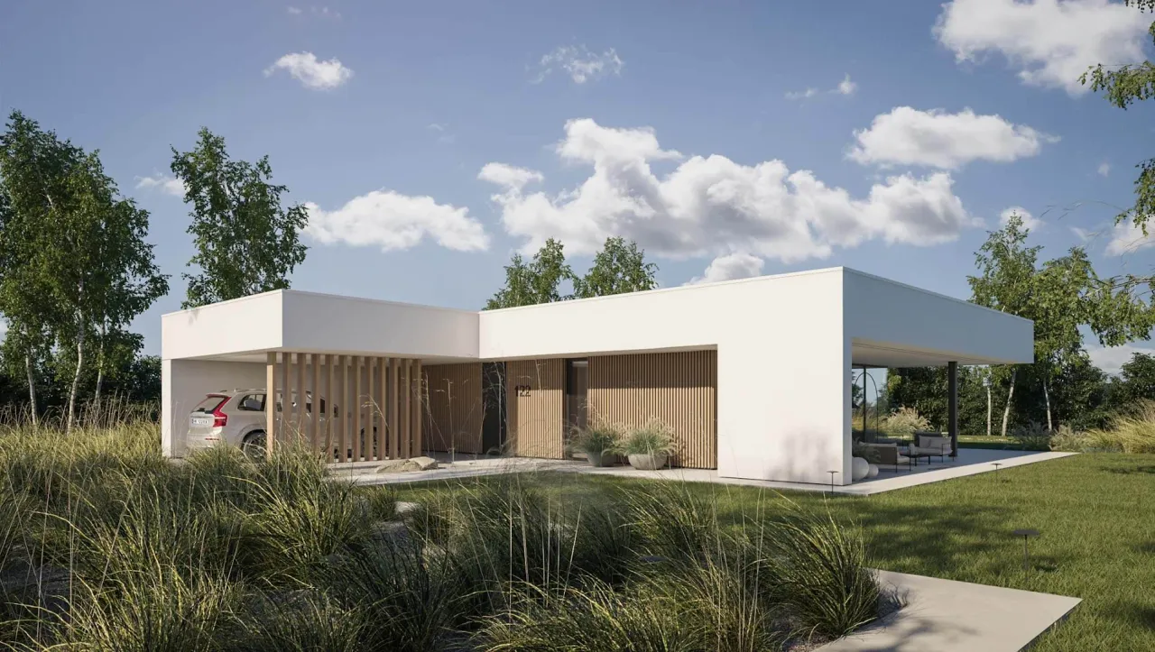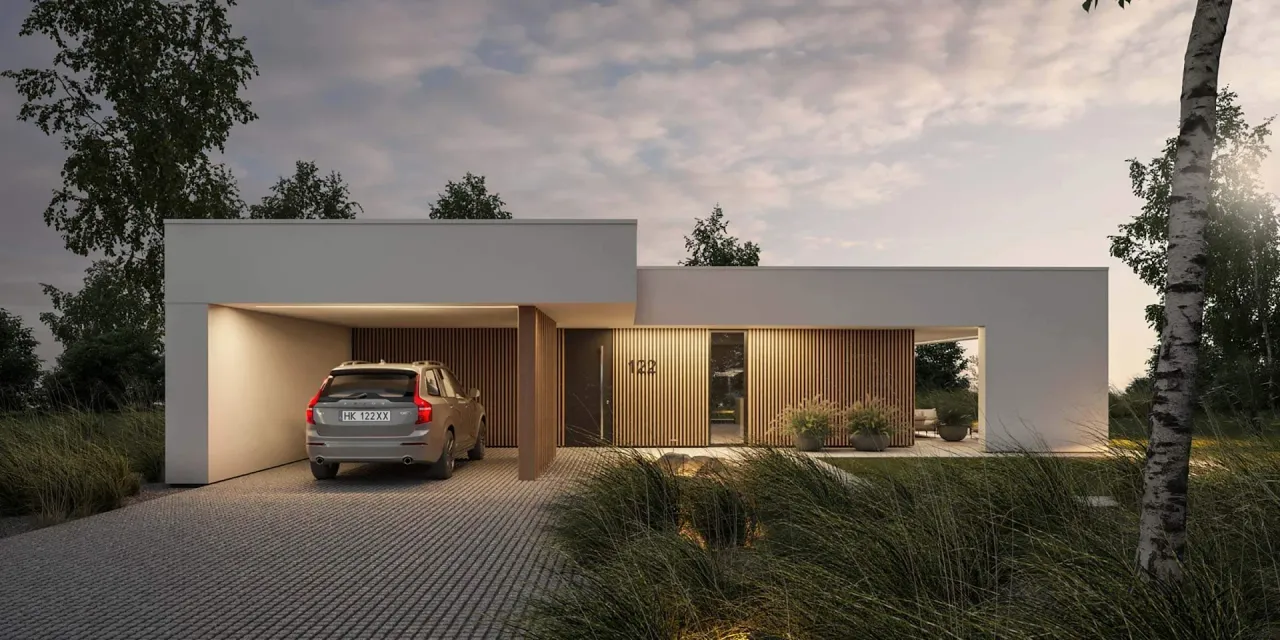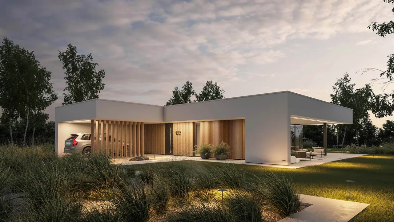 Projekt domu Koncept-122 zachwyca nowoczesnym wyglądem. Duże okna wpuszczają mnóstwo światła. Zastosowanie jasnych elewacji dodaje mu elegancji. Prosta bryła pasuje zarówno do miejskiego, jak i wiejskiego otoczenia. Drewno na elewacji idealnie komponuje się z zielenią. Układ wnętrza jest intuicyjny i przemyślany. Materiały dobrano z najwyższą starannością. Projekt wyróżnia się funkcjonalnością. Płaski dach dodaje nowoczesnego charakteru. Detale architektoniczne przyciągają wzrok. Rozważam zakup projektu i budowę tego domu.