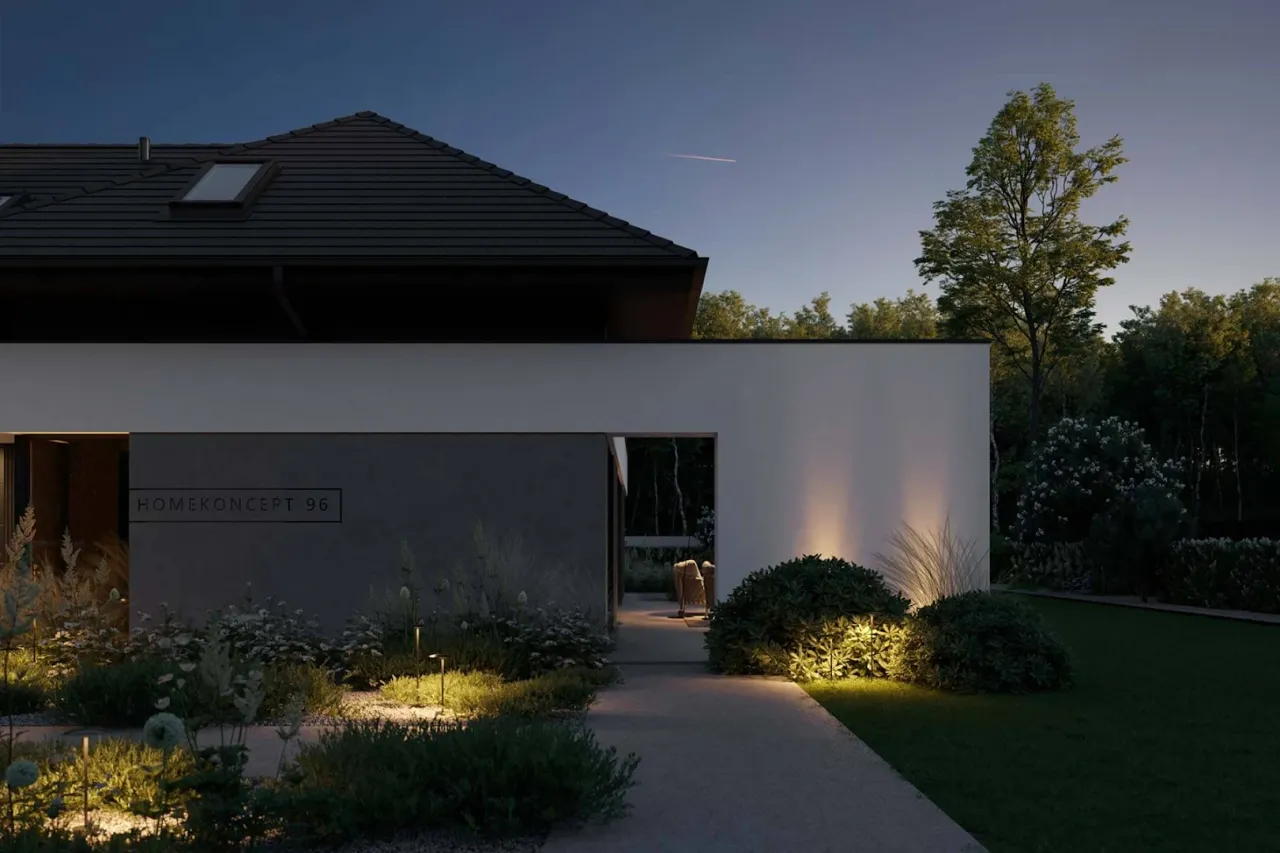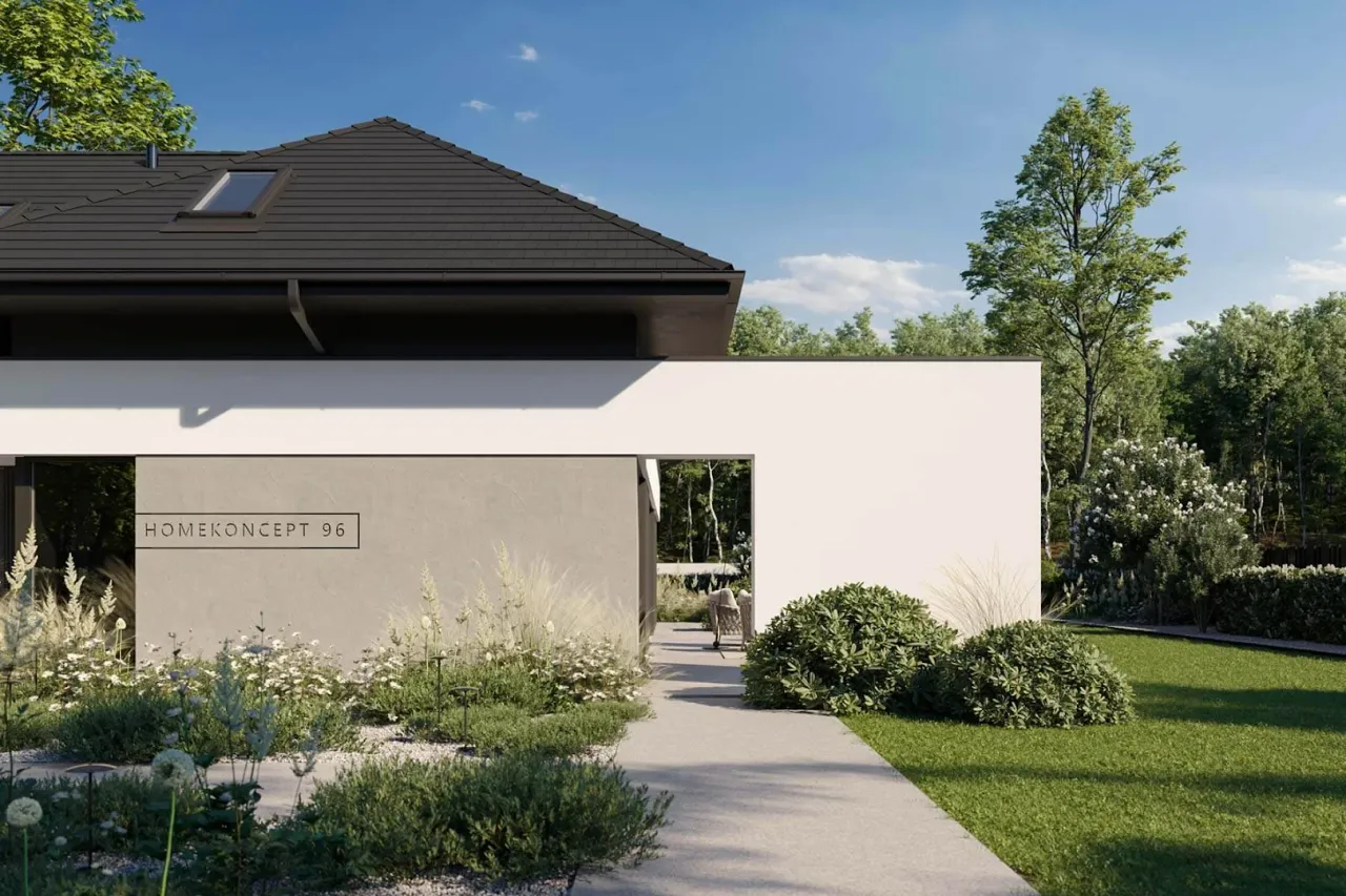 Wypełnij formularz i otrzymaj rysunki w pdf z dokładnymi wymiarami budynku i pomieszczeń (długość, szerokość, wysokość) dla projektu HomeKoncept 96