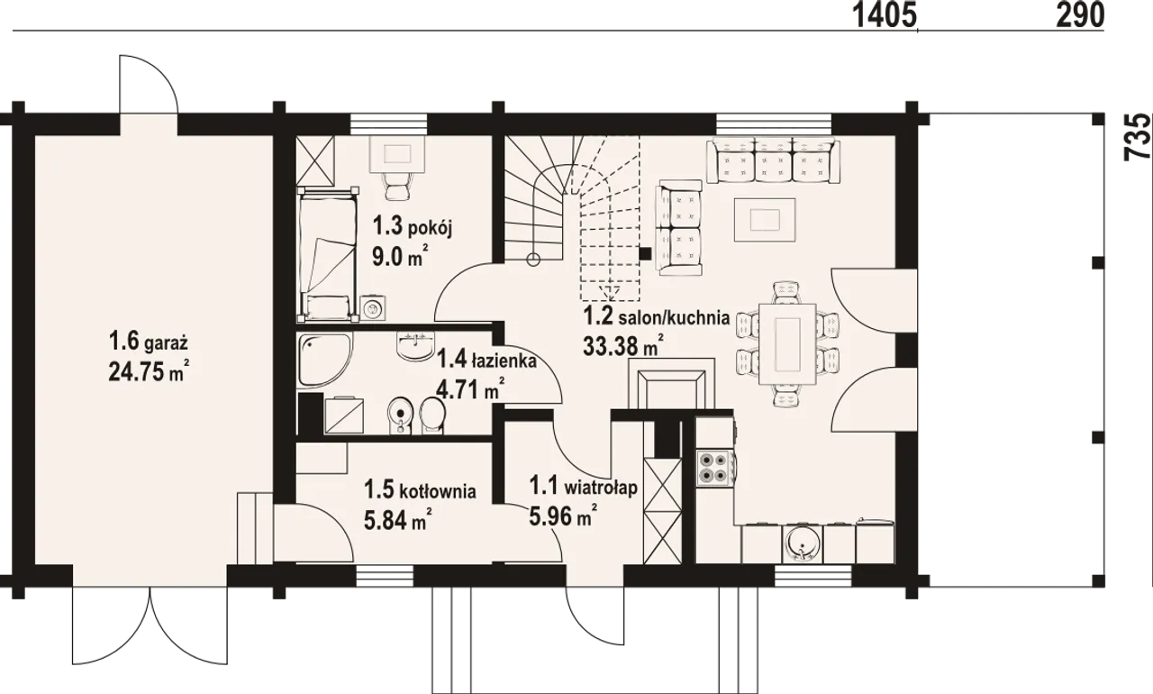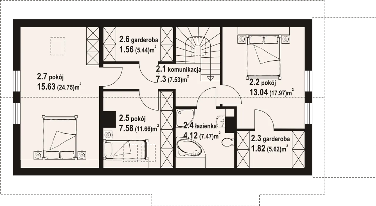 Wypełnij formularz i otrzymaj rysunki w pdf z dokładnymi wymiarami budynku i pomieszczeń (długość, szerokość, wysokość) dla projektu Kopowo dw