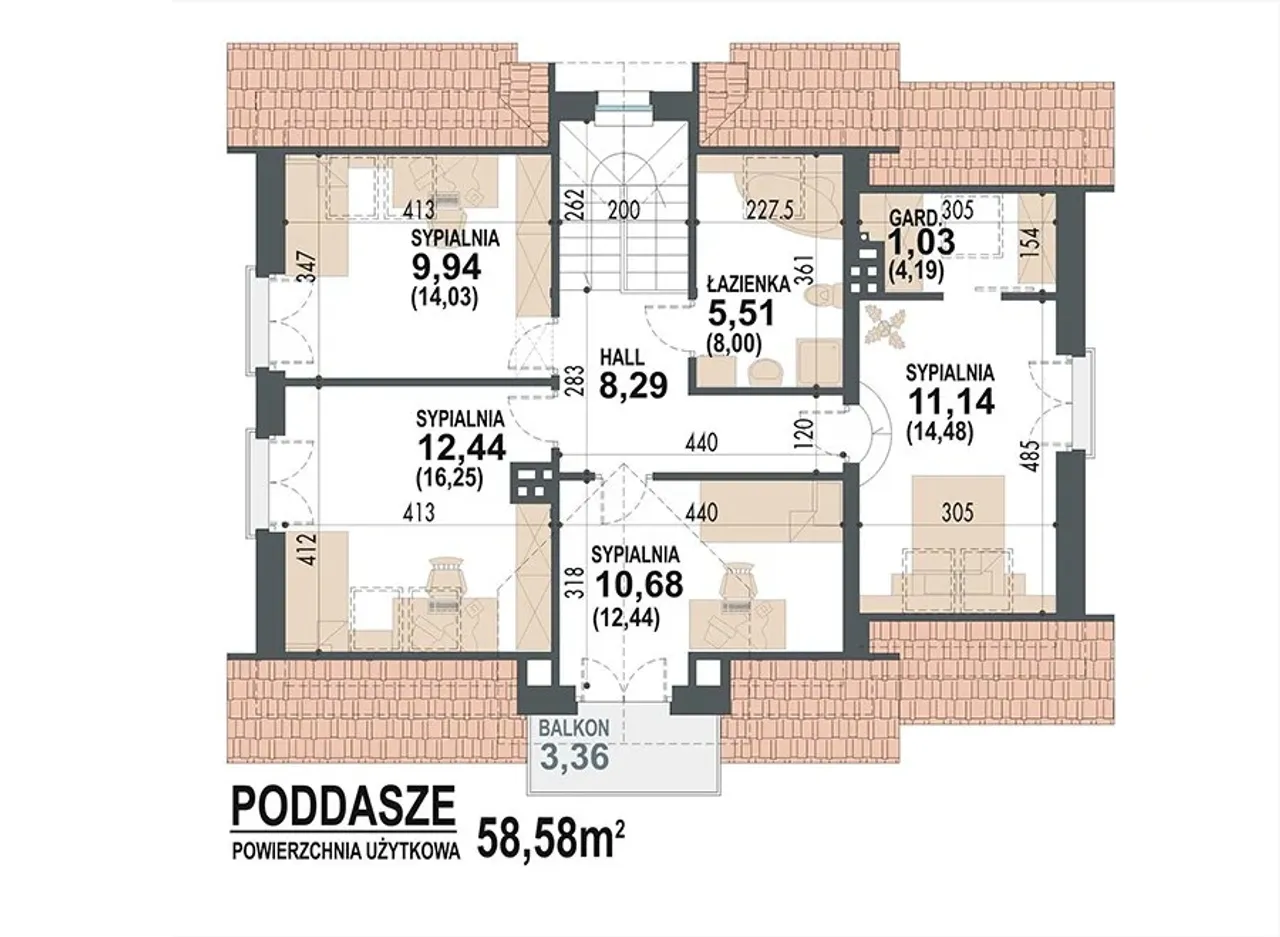Wypełnij formularz i otrzymaj rysunki w pdf z dokładnymi wymiarami budynku i pomieszczeń (długość, szerokość, wysokość) dla projektu Koralgol K II