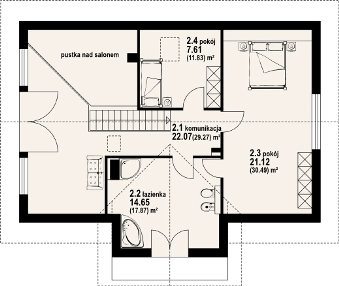- rzutów kondygnacji użytkowych (parteru i jeśli występują: poddasza, piętra, piwnic)