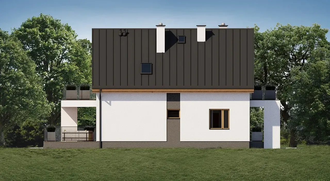 Kupując projekt w technologii murowanej powinieneś budować dom murowany. Zupełna zmiana technologii na szkieletową wymaga przeprojektowania całego budynku ( zmieniają się obciążenia, fundamenty, konstrukcja dachu). Wydamy zgodę na takie przeprojektowanie jednak wiążę się to z dużymi kosztami. Istnieją firmy wykonawcze, które podejmują się zmiany technologii budowy bezpłatnie przy skorzystaniu z ich usług wykonawczych. Zdarza się, że pracownia architektoniczna przygotowuje warianty konkretnego projektu przewidując także inne technologie. Prosimy o sprawdzenie czy istnieje poszukiwana wersja projektu, w zakładce - warianty projektu.