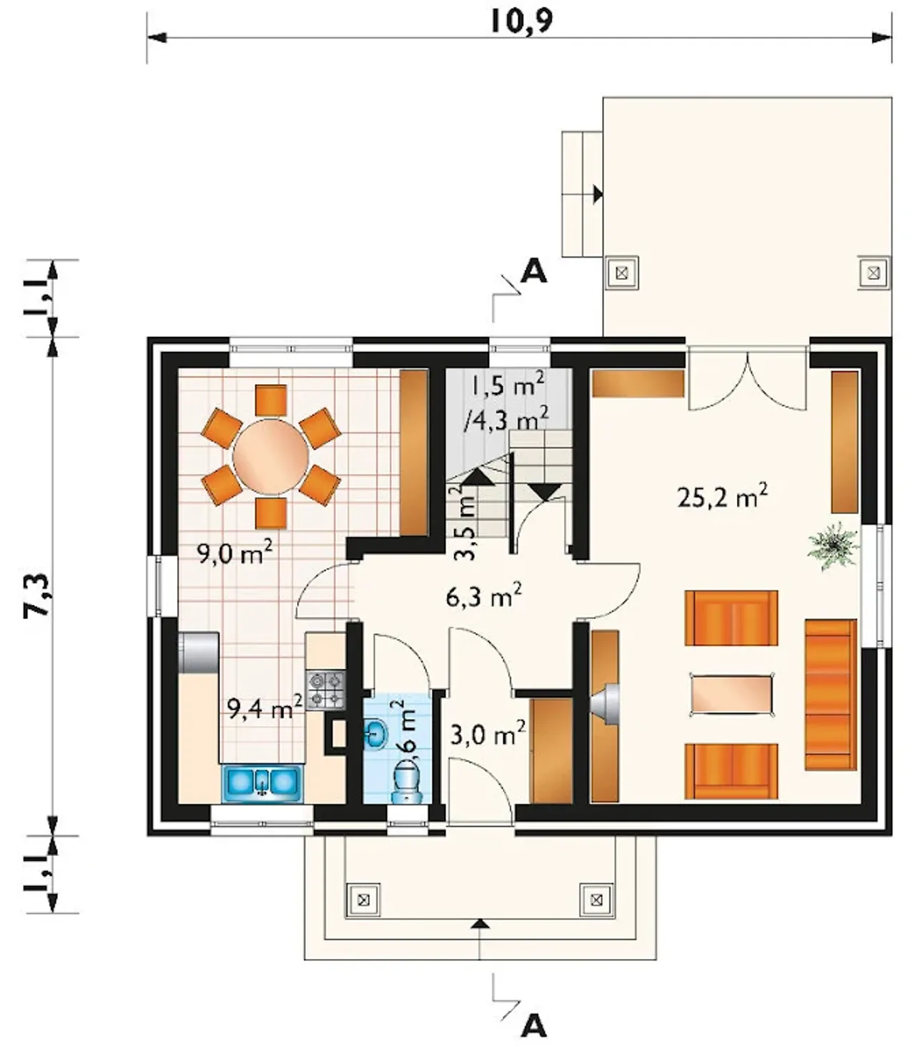 Długość budynku 10.9 m |