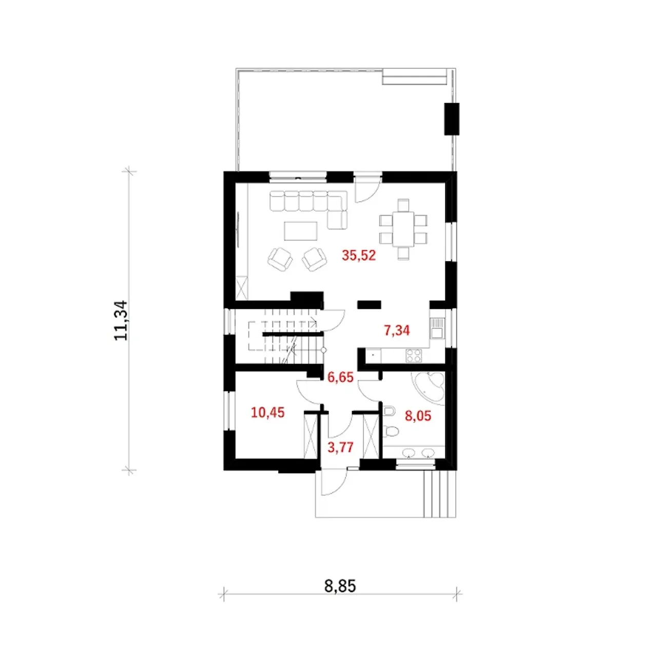 5. Pokój dzienny z jadalnią | 35,52 m² |