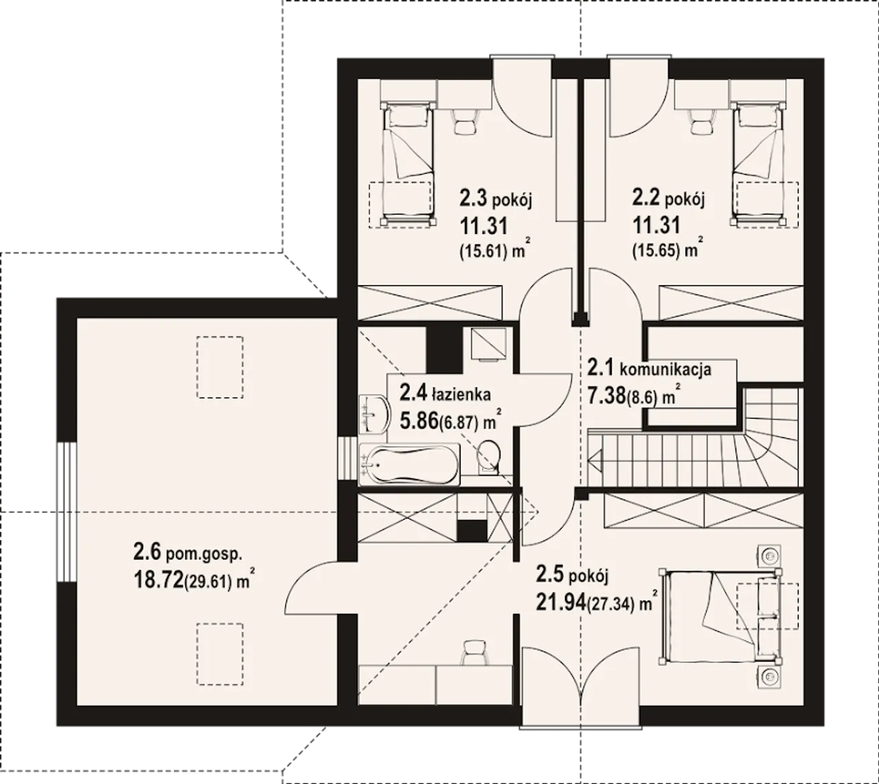 Wypełnij formularz i otrzymaj rysunki w pdf z dokładnymi wymiarami budynku i pomieszczeń (długość, szerokość, wysokość) dla projektu Kowalowo dw