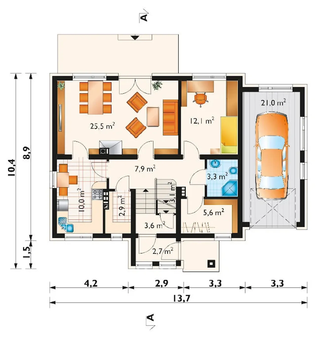Wypełnij formularz i otrzymaj rysunki w pdf z dokładnymi wymiarami budynku i pomieszczeń (długość, szerokość, wysokość) dla projektu Krab-3