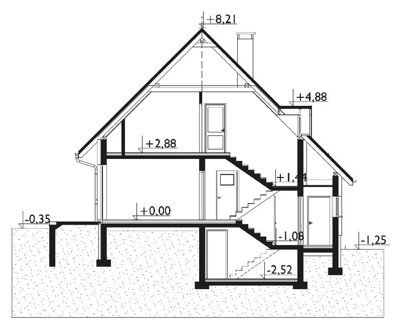 - przekroje - pokazują wszystkie elementy budynku po przecięciu go wzdłuż lub w poprzek od dachu do fundamentów tj. warstwy podłogi, stropów i dachu