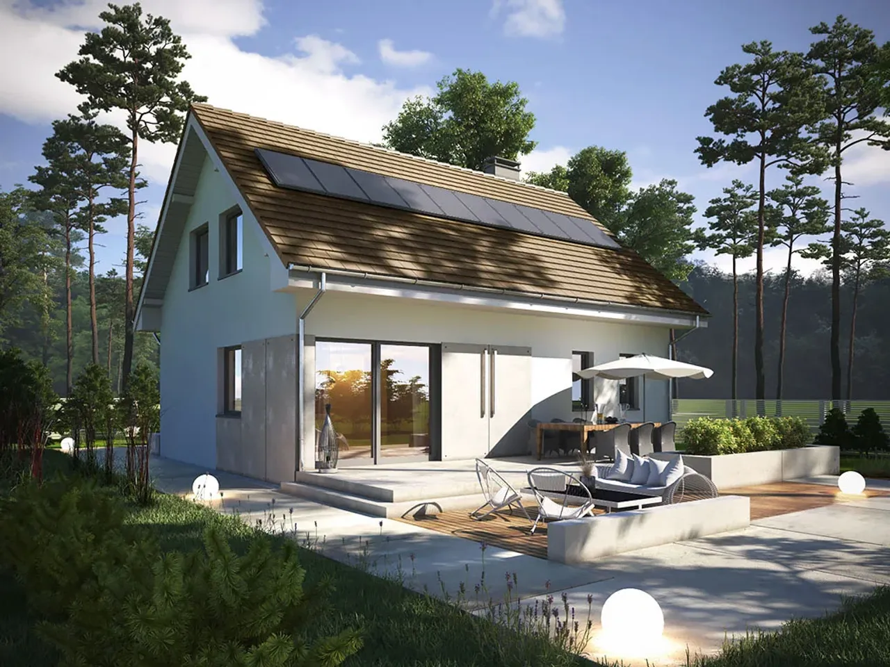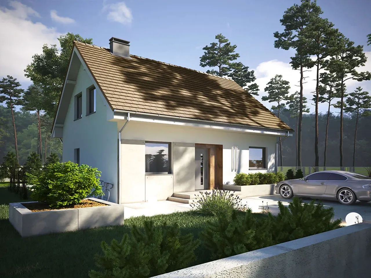 - Tradycyjna architektura: Dach dwuspadowy 40° i murowana technologia łatwo wpisują się w większość planów miejscowych.