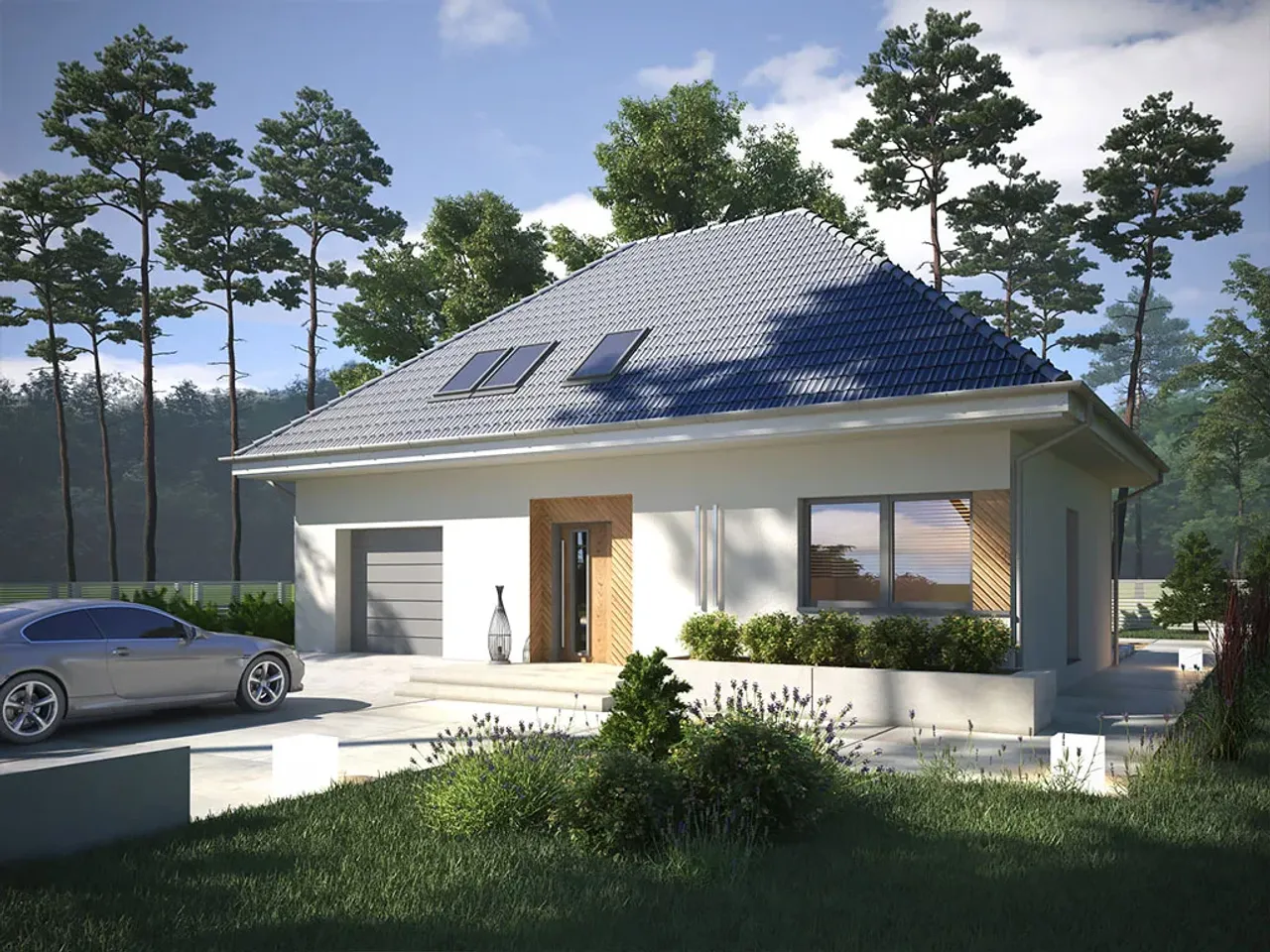 Dom wybudowany na podstawie projektu Krajobrazy 31 będzie funkcjonalnym rozwiązaniem zarówno dla działek na terenach lekko pochyłych, jak i płaskich parceli na wsi czy w małych miastach. Elegancki dach wielospadowy dobrze komponuje się z otoczeniem - od zielonych przedmieść po tereny bardziej otwarte, gdzie bryła domu staje się ważnym elementem krajobrazu.