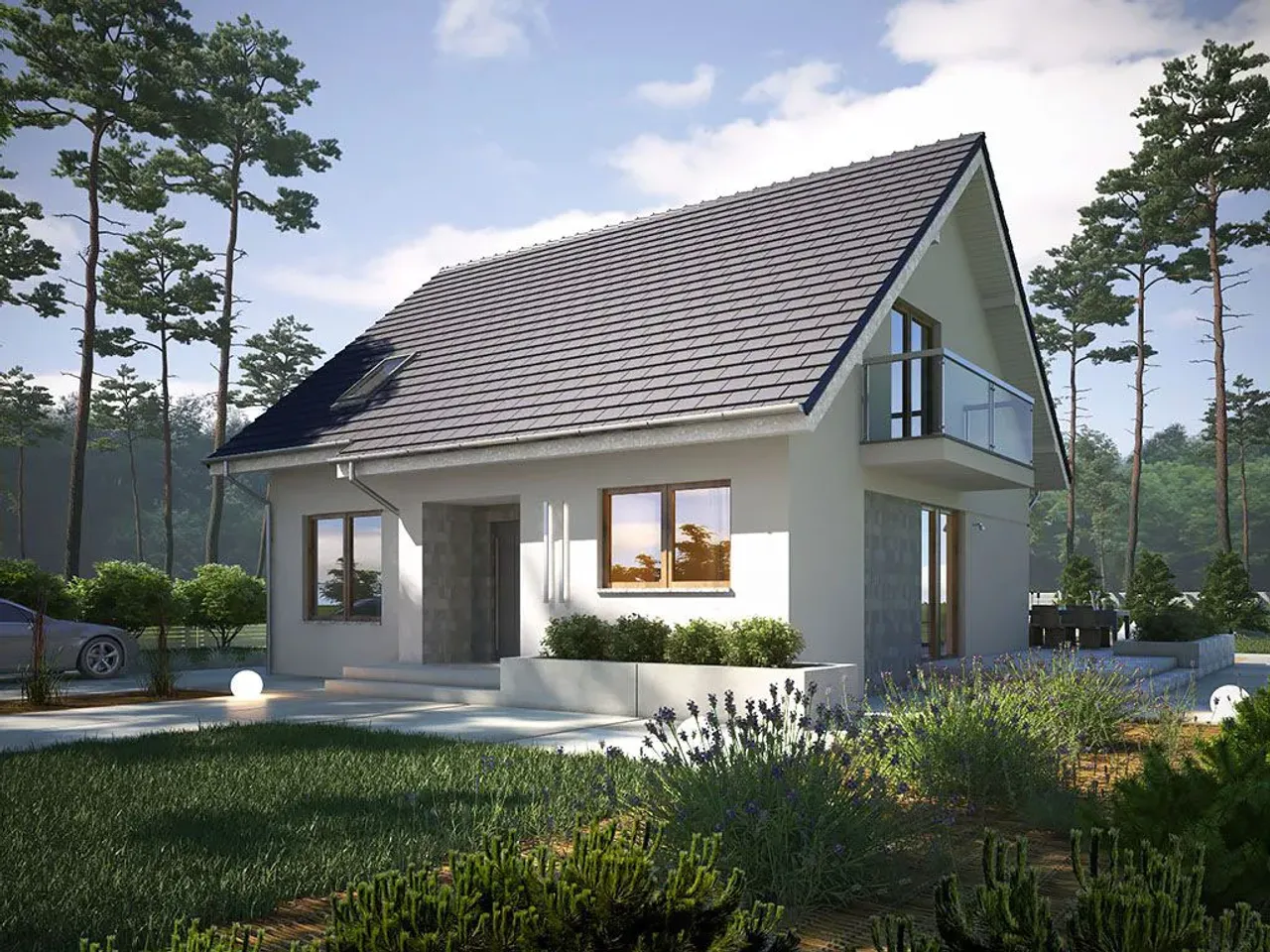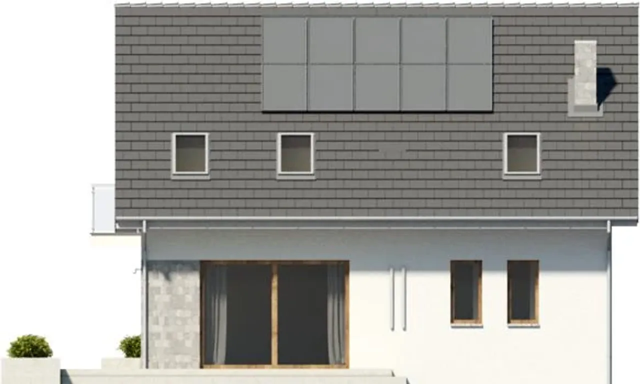 - Stromy dach dwuspadowy zgodny z częstymi wymogami MPZP.