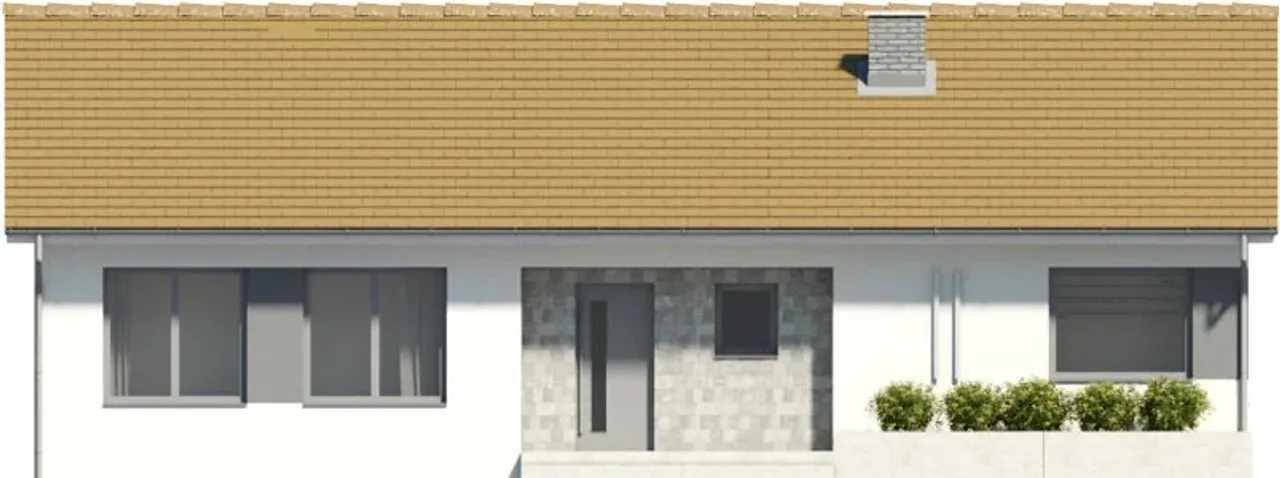 Projekt domu Krajobrazy 84 to nowoczesny, parterowy dom jednorodzinny dla osób, które cenią prostotę formy, energooszczędność i wygodę codziennego życia na jednym poziomie. Przemyślany układ pięciu pokoi, brak garażu oraz jednolita bryła z dachem dwuspadowym tworzą funkcjonalny dom, idealny dla rodziny 2+2 lub 2+3, a także dla osób planujących wygodne zamieszkanie na stałe bez barier schodów.
