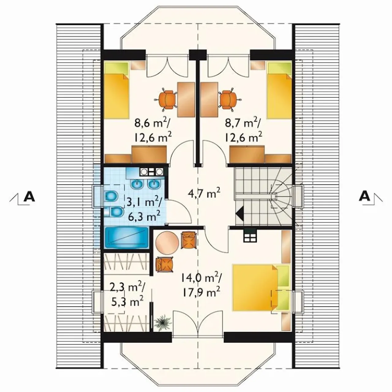 - elewacje - pokazują dokładny wygląd domu od frontu, z tyłu i z boków