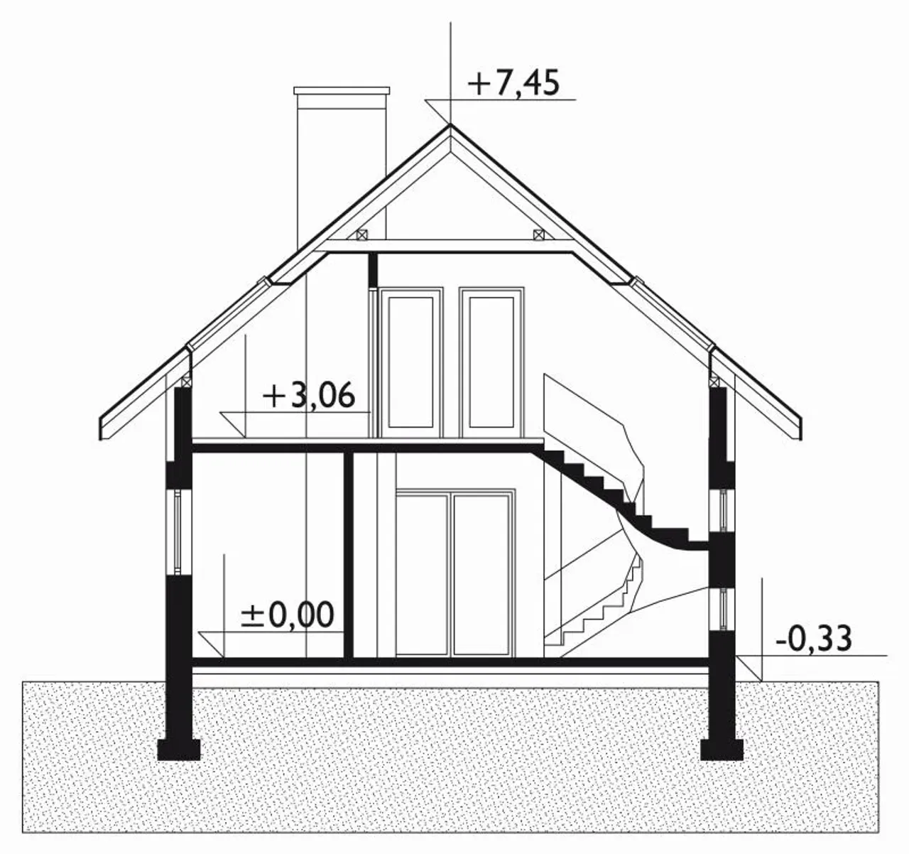 - przekroje - pokazują wszystkie elementy budynku po przecięciu go wzdłuż lub w poprzek od dachu do fundamentów tj. warstwy podłogi, stropów i dachu