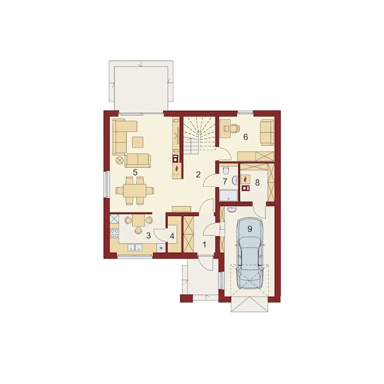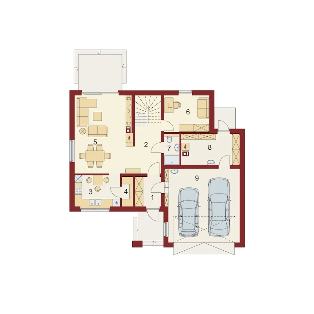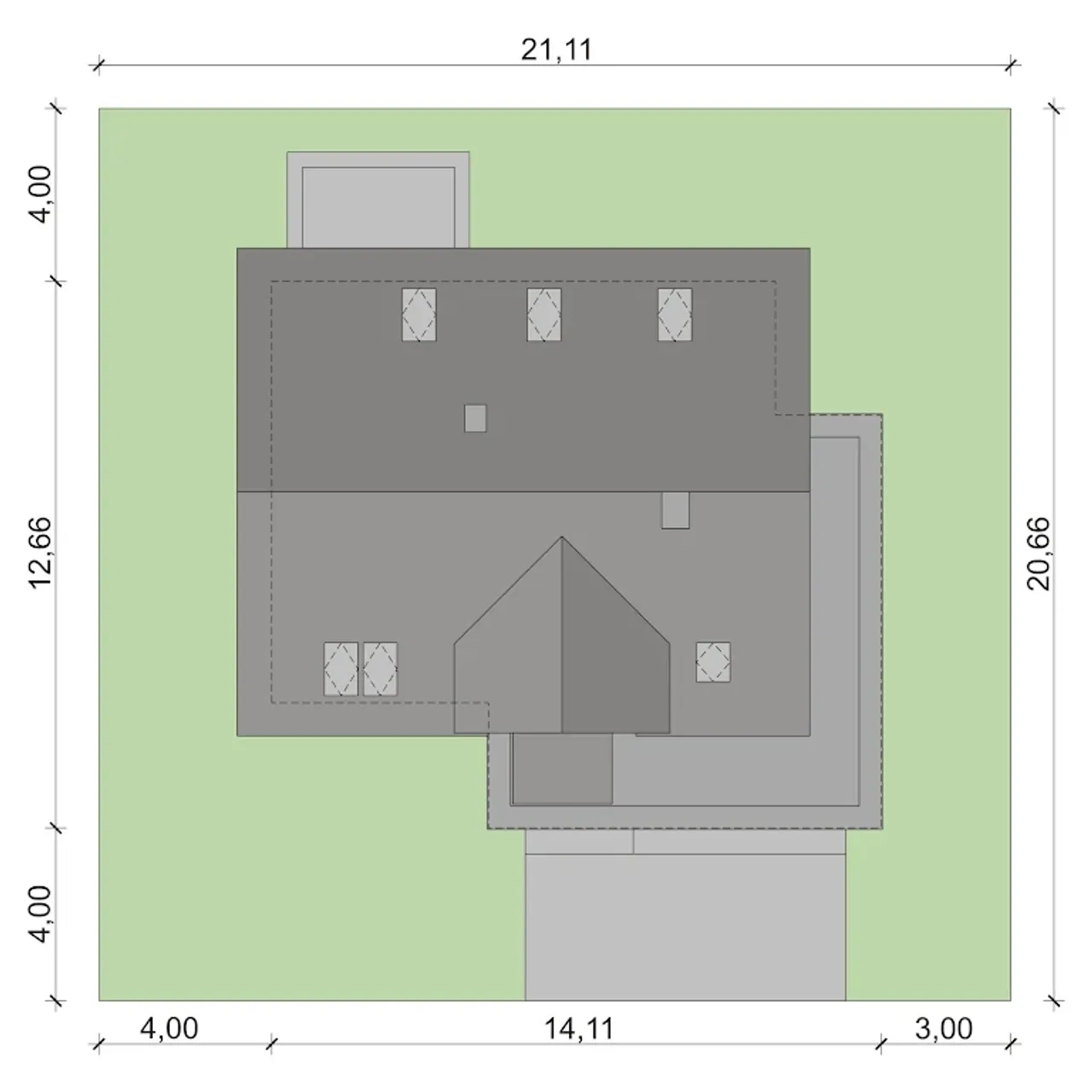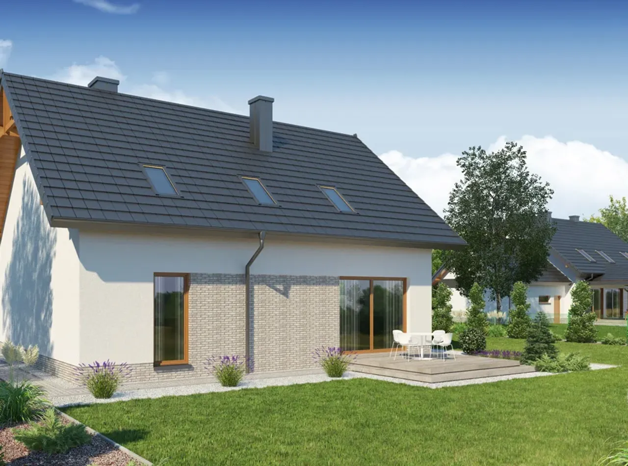 Gotowy projekt domu Ksawery 2 PS to ciekawy, funkcjonalny projekt domu w technologii murowanej. Ksawery 2 PS posiada garaż dwustanowiskowy zlokalizowany w bryle budynku. Ksawery 2 PS to dom parterowy z poddaszem użytkowym w stylu tradycyjnym o kubaturze 552.12 m3. Ksawery 2 PS to dom całoroczny z dachem dwuspadowym o kącie nachylenia 40 stopni.