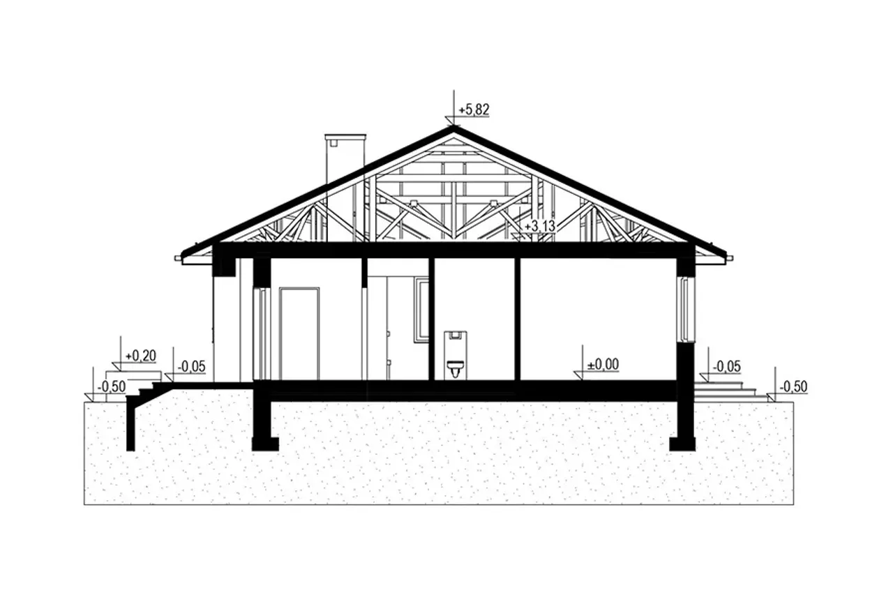 - rzut dachu - ukazuje jego kształt, wymiary, kąt nachylenia połaci, rozmieszczenie okien połaciowych, lukarn, świetlików i rur spustowych, pokazuje rozmieszczenie kominów i informuje o sposobie odwodnienia: rozmieszczeniu i rozmiarach rynien