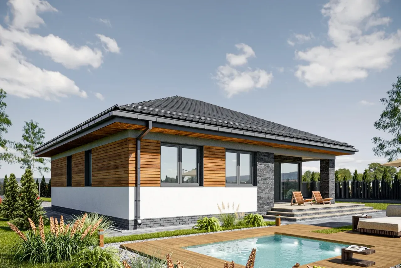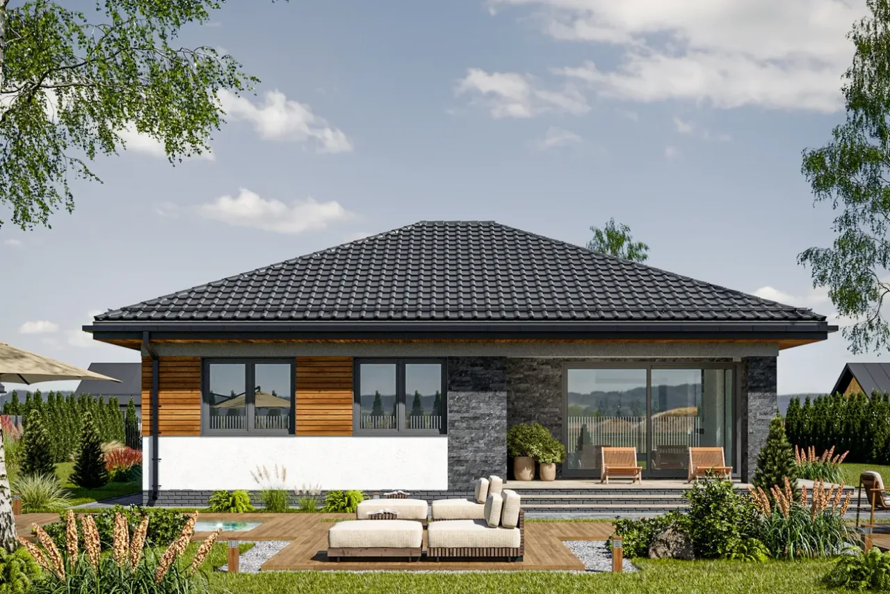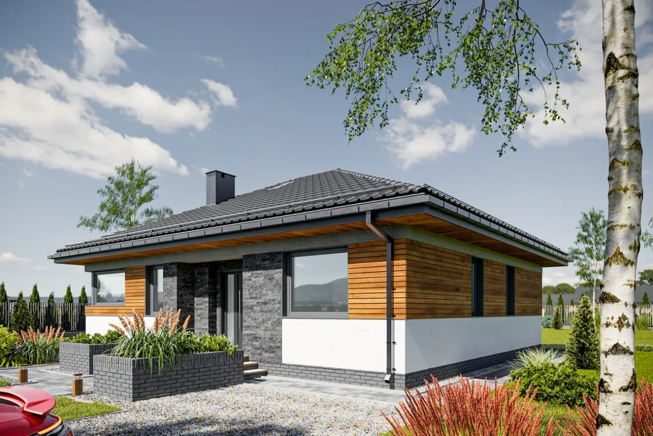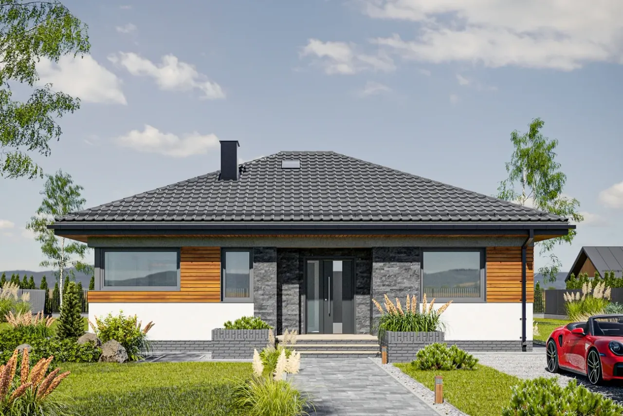 - elewacje - pokazują dokładny wygląd domu od frontu, z tyłu i z boków