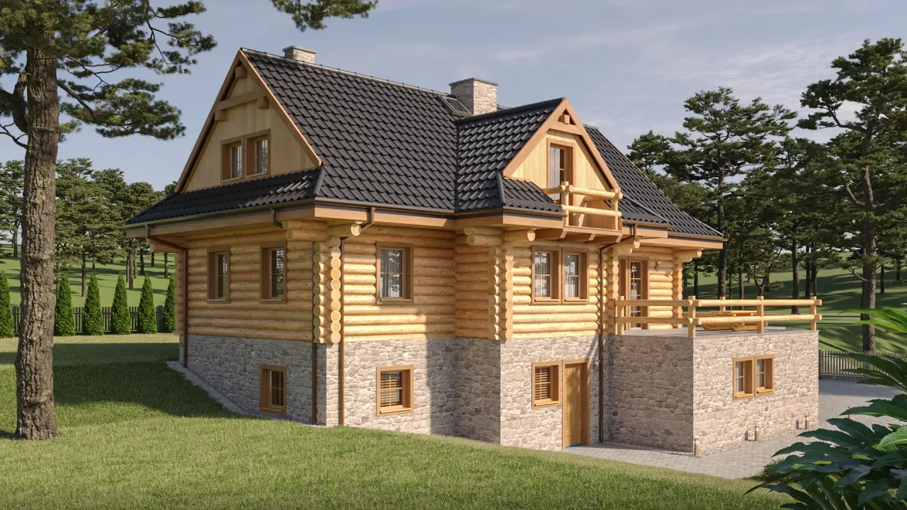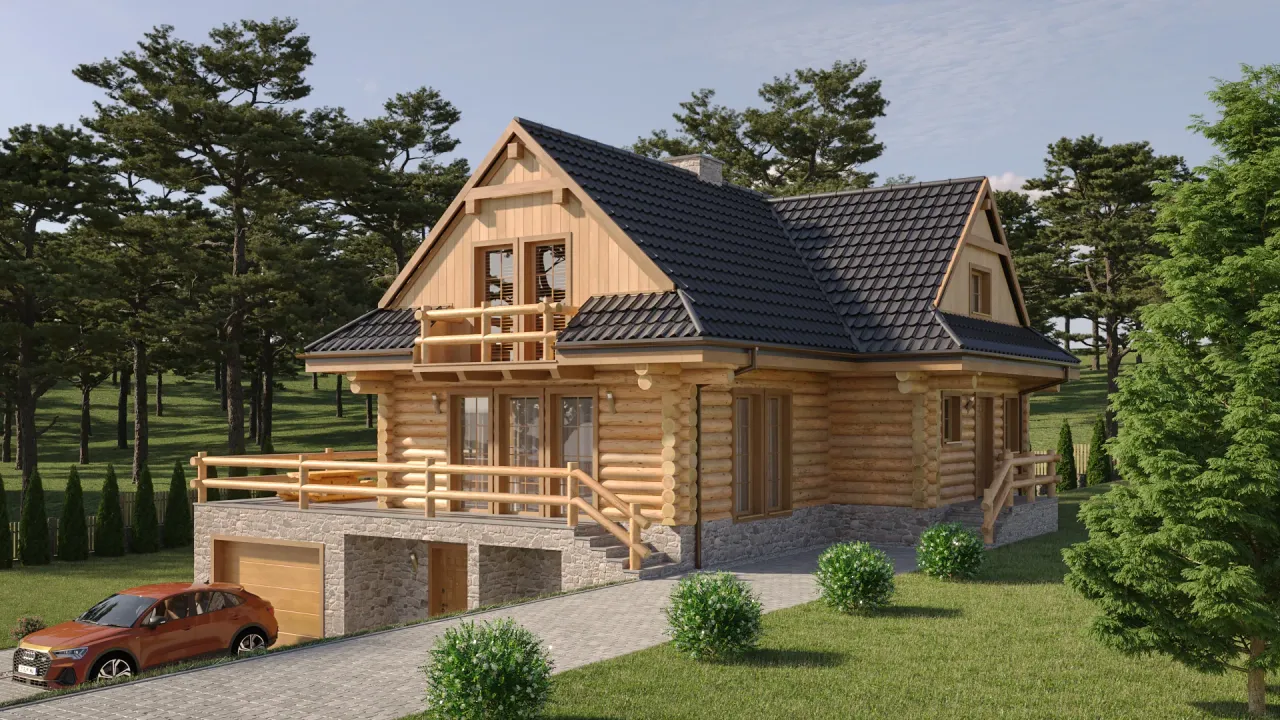 Piwnica w projekcie daje przestrzeń do przechowywania, urządzenia warsztatu czy spiżarni, a także stanowi doskonałe miejsce na garaż. Funkcjonalność parteru i poddasza oferuje szerokie możliwości aranżacyjne — każdy pokój może pełnić inną funkcję. Komfortowe warunki przez cały rok zapewnia technologia budowy z bali, która sprzyja zdrowemu mikroklimatowi oraz wyróżnia budynek na tle innych.