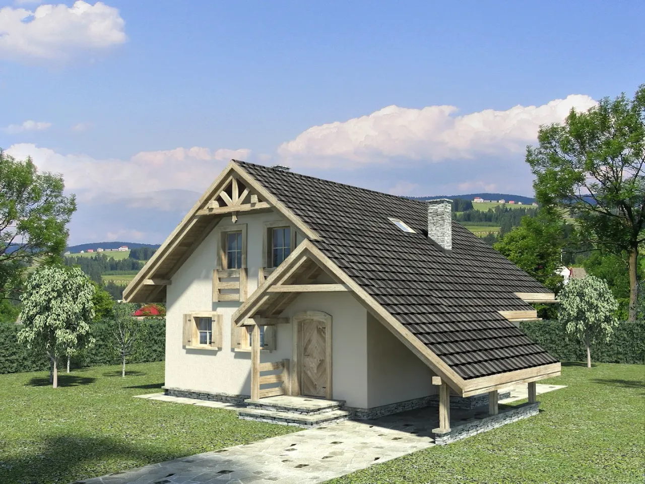 Zastosowanie innowacyjnej technologii szkieletowej oraz drewna gwarantuje korzystny mikroklimat we wnętrzach, szybki proces budowy oraz zmniejszenie przyszłych kosztów eksploatacji. Brak podpiwniczenia i garażu pozwala zaoszczędzić miejsce na działce, a wykorzystanie wiaty daje opcję elastycznego zabezpieczenia samochodu przed niekorzystnymi warunkami pogodowymi.