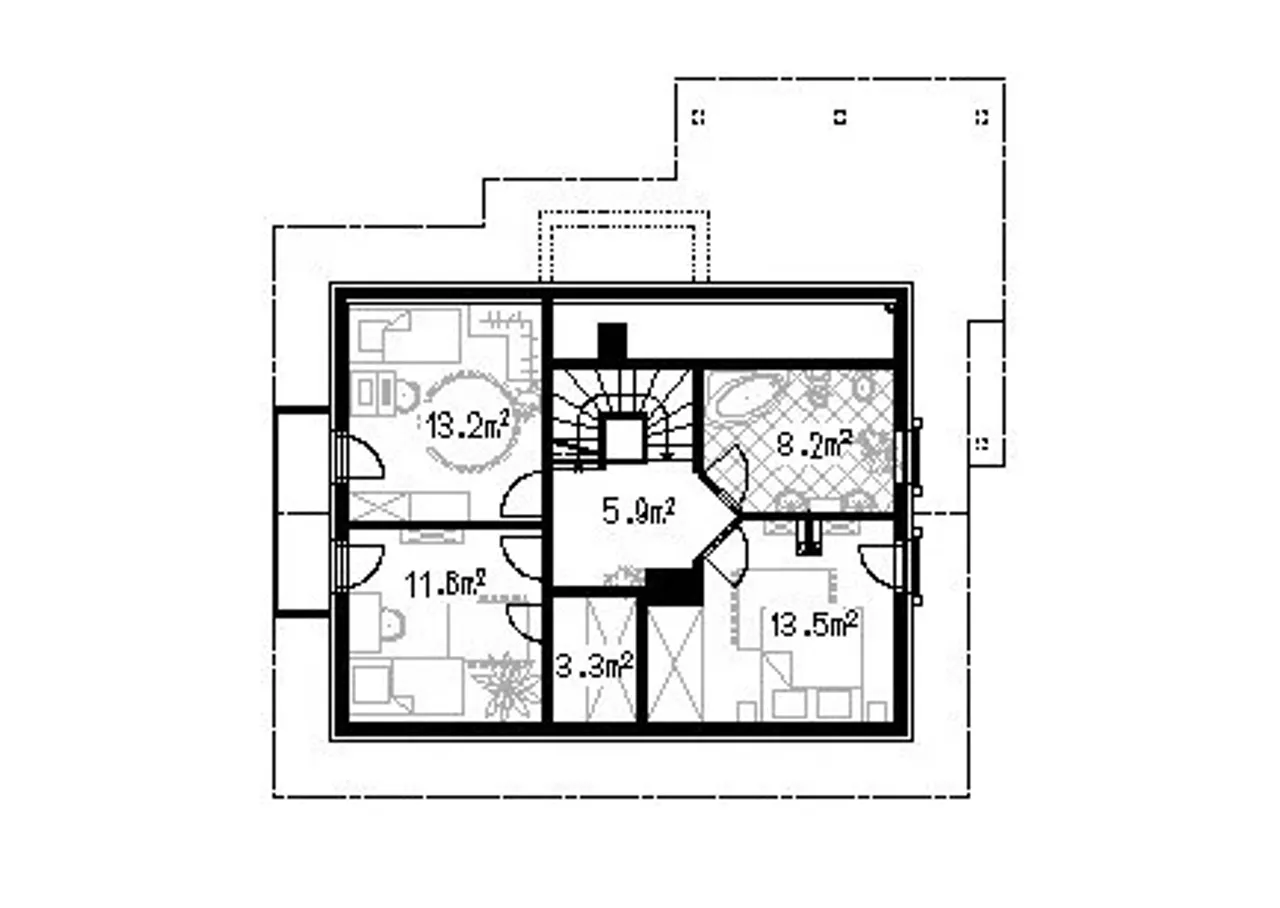 Dom jednorodzinny L-202 stworzony został jako budynek całoroczny, parterowy z użytkowym poddaszem. Funkcja została rozłożona na pięć przestronnych pokoi, co pozwala na maksymalne dopasowanie do indywidualnych potrzeb domowników. Na uwagę zasługuje logiczny układ pomieszczeń - parter sprzyja życiu rodzinnemu i wspólnemu spędzaniu czasu, natomiast poddasze ułatwia stworzenie prywatnych stref do wypoczynku.