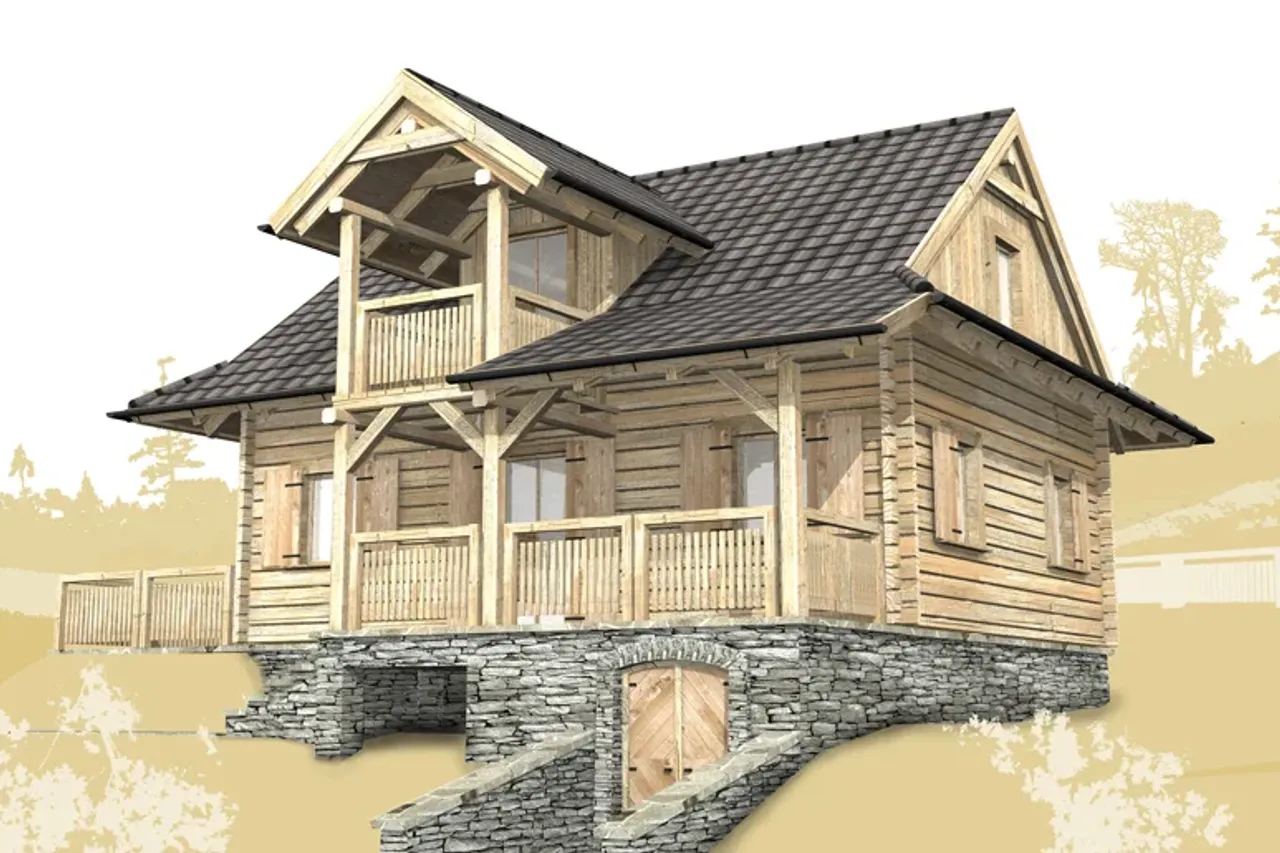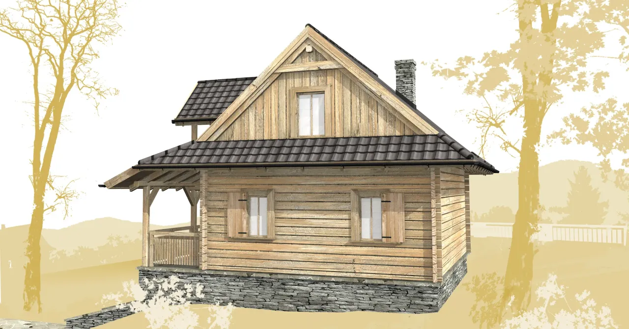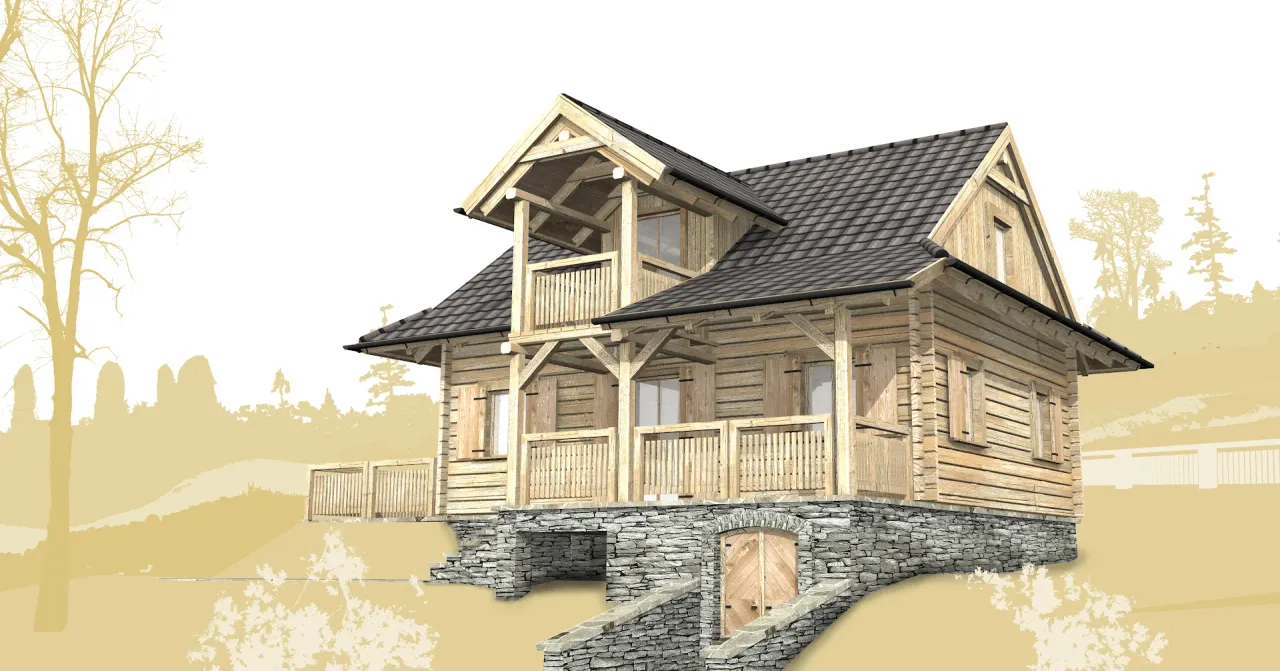Odkryj tradycyjny projekt domu z bali, idealny dla całorocznego zamieszkania. Prosta bryła budynku, dwuspadowy dach oraz przytulny kominek tworzą wyjątkową przestrzeń, w której każdy dzień nabiera wyjątkowego charakteru. Dom doskonale wpisuje się w naturalne otoczenie, zapewniając przyjazny klimat o każdej porze roku.