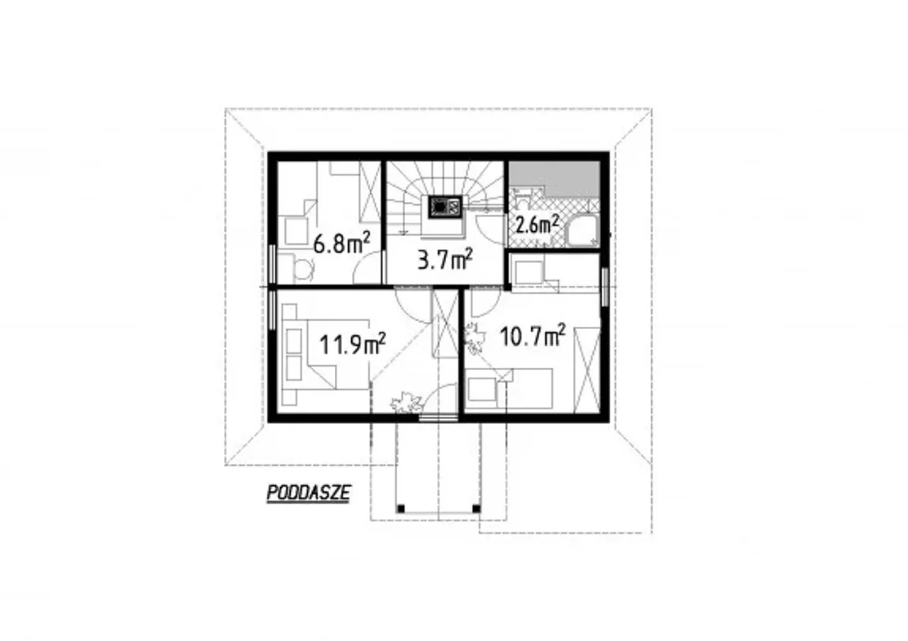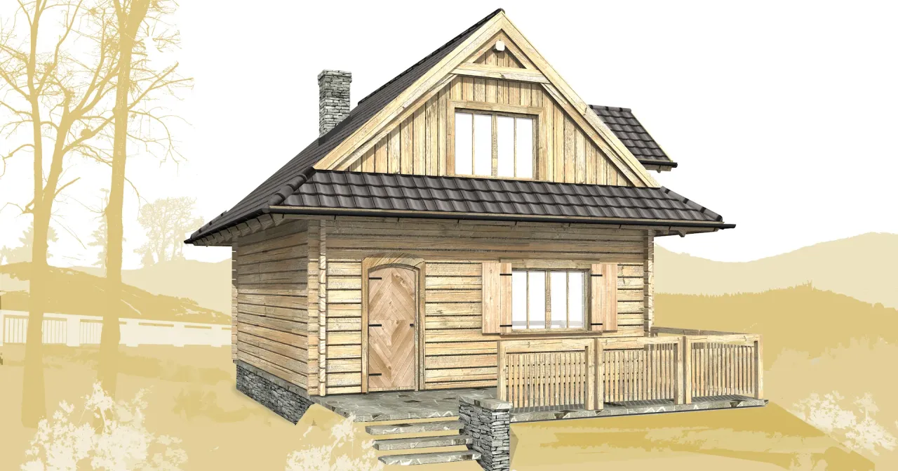 Projekt parterowego domu z poddaszem użytkowym i czterema pokojami to doskonały wybór dla rodzin szukających komfortu i funkcjonalności. Łukarny subtelnie doświetlają wnętrza, a drewniana konstrukcja nadaje całości szlachetnego, ponadczasowego wyglądu.