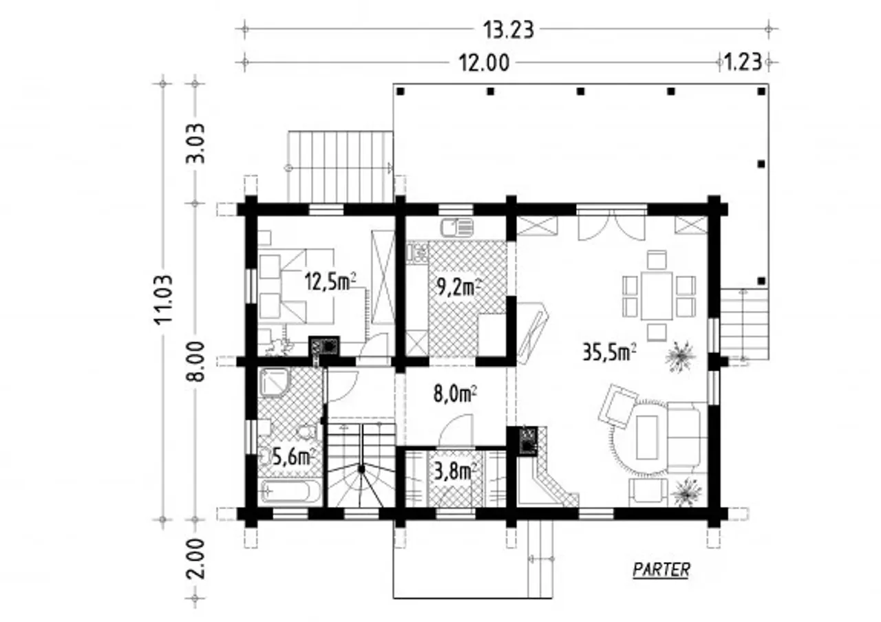 Dom wybudowany w technologii z bali stanie się niepowtarzalnym miejscem, w którym codzienność nabiera wyjątkowego charakteru. Odpowiedni na działki rekreacyjne i podmiejskie, pozwala cieszyć się wygodą przez wszystkie pory roku.
