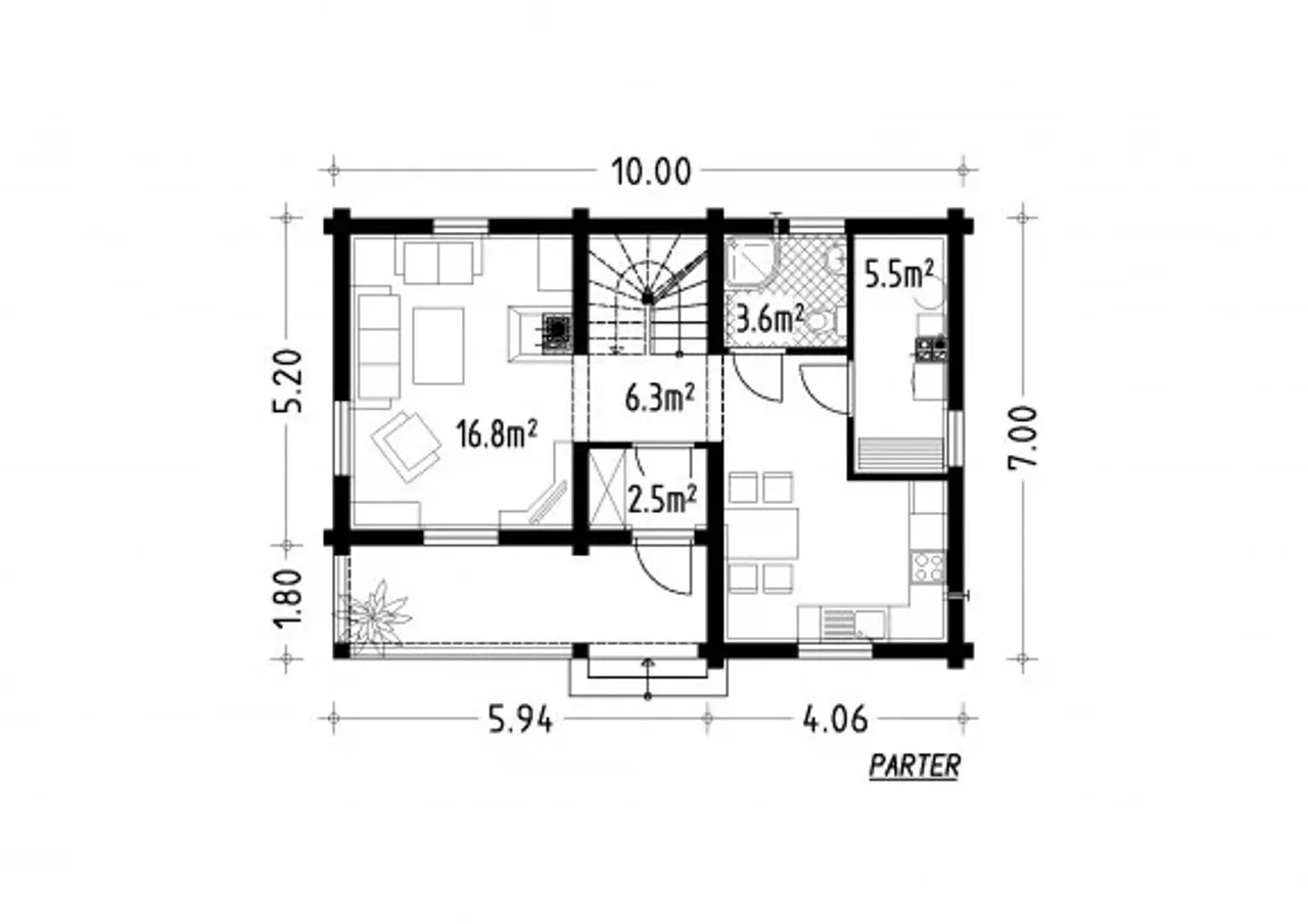 Odkryj tradycyjny dom z bali o bryle litery L - idealny dla czteroosobowej rodziny, która ceni przytulność, nowoczesne rozwiązania i wyjątkowy klimat domowego ogniska. Ten całoroczny projekt wyróżnia się nie tylko funkcjonalnością na co dzień, ale także unikalną architekturą, która przyciąga wzrok i harmonizuje z dowolnym otoczeniem.