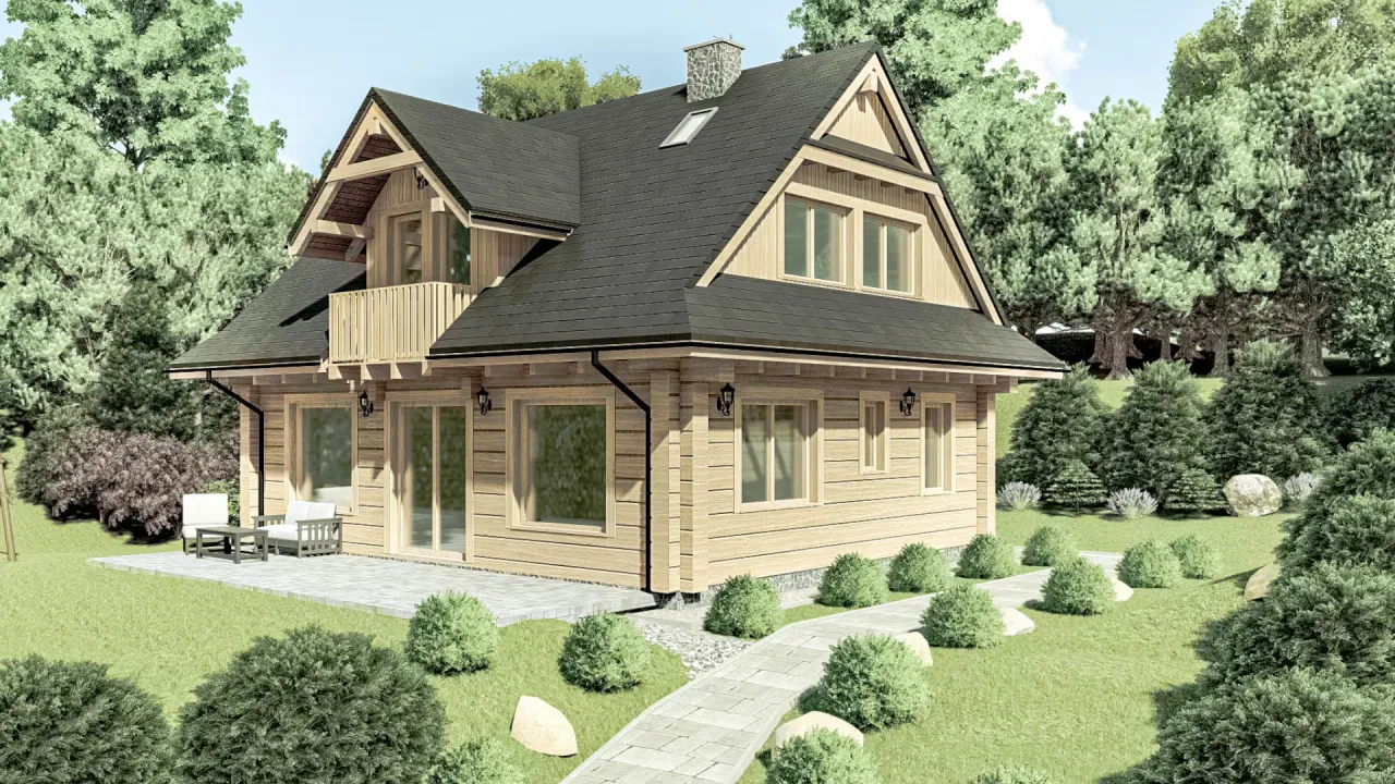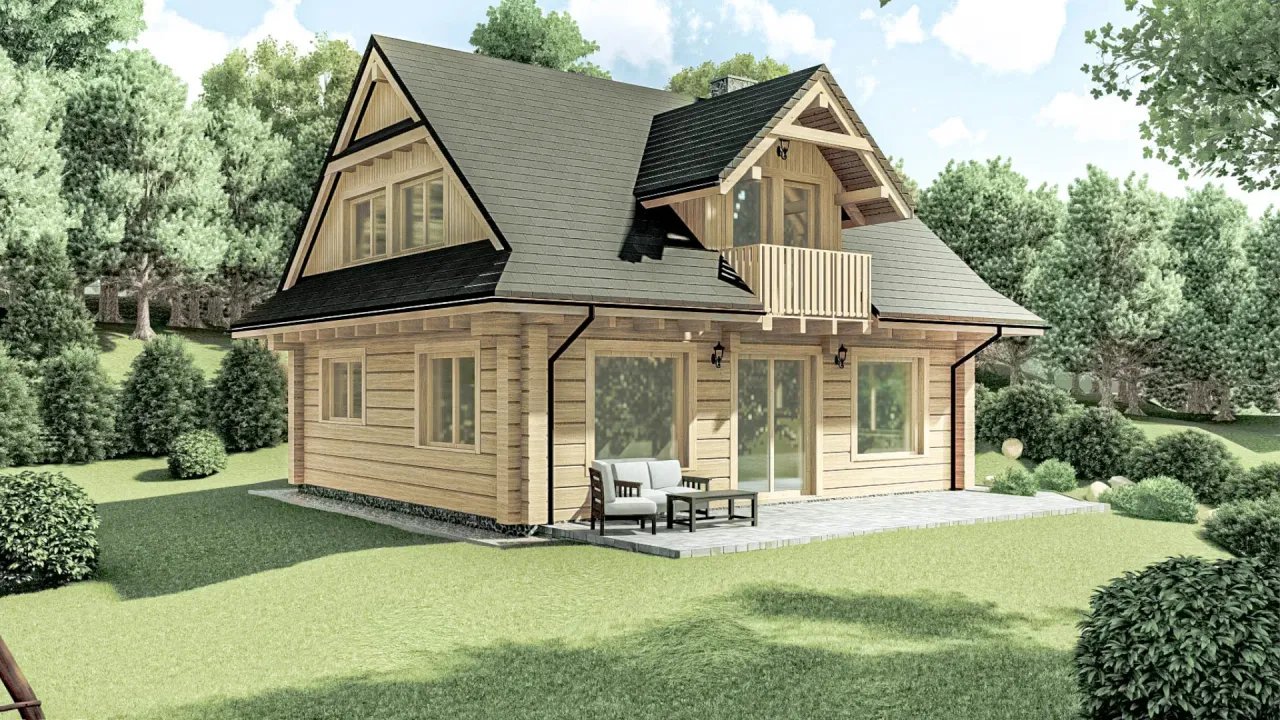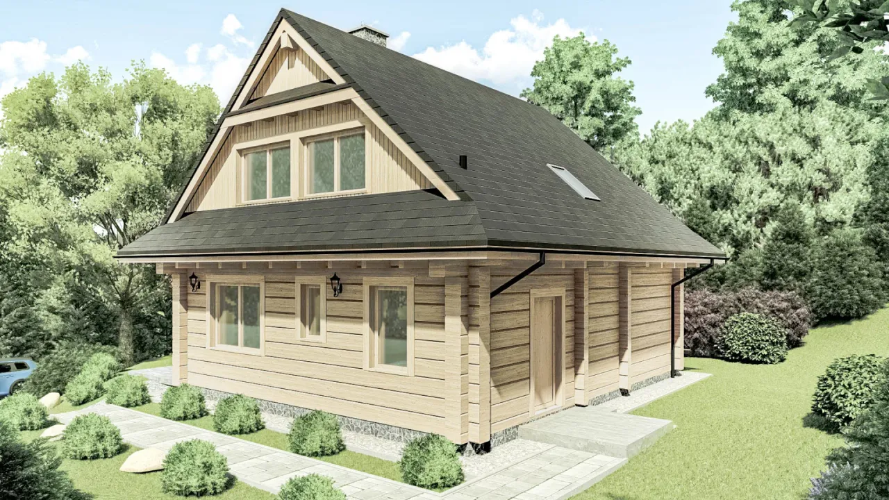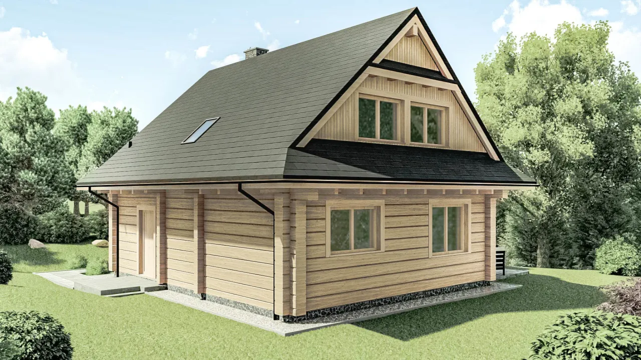 Naturalny charakter drewna, efektowne lukarny oraz szlachetny dwuspadowy dach o kącie 42 stopni tworzą wyjątkową przestrzeń do życia, która inspiruje do spędzania czasu razem i cieszenia się domowym ciepłem przez cały rok.