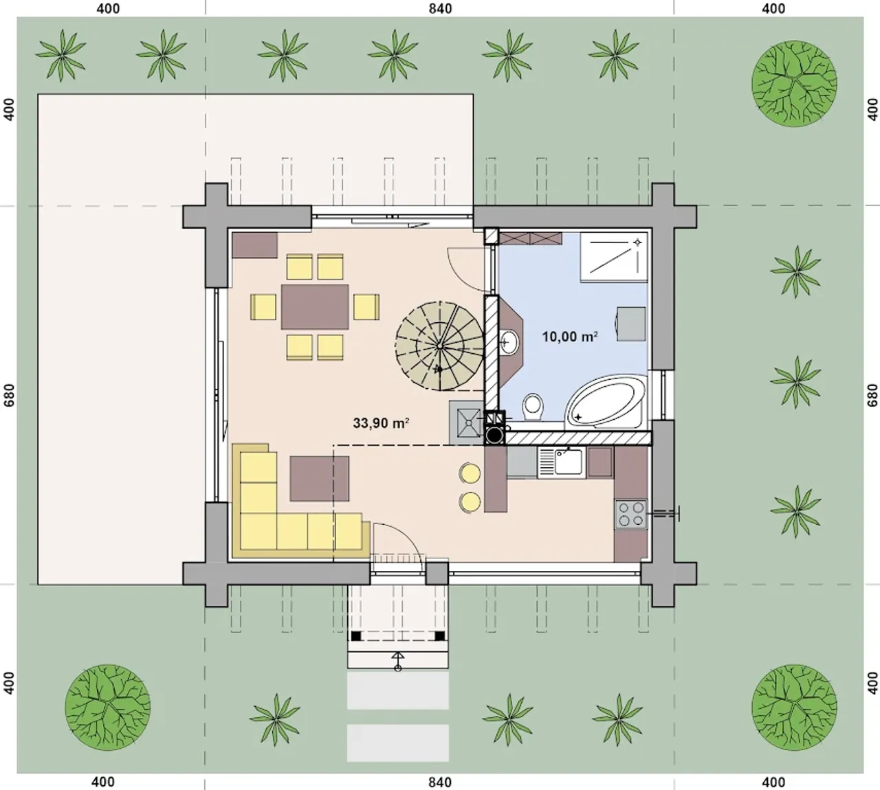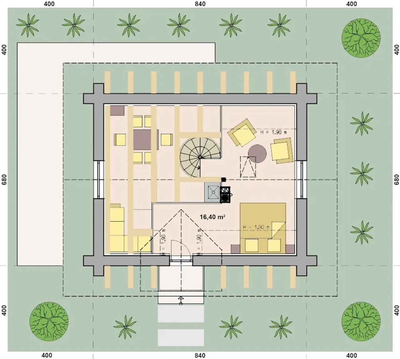 - Dwuspadowy dach zwiększający odporność na warunki pogodowe