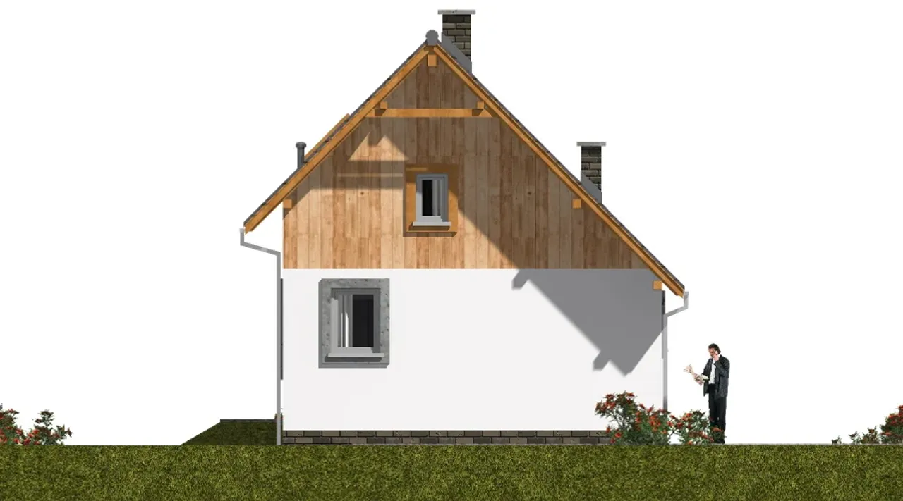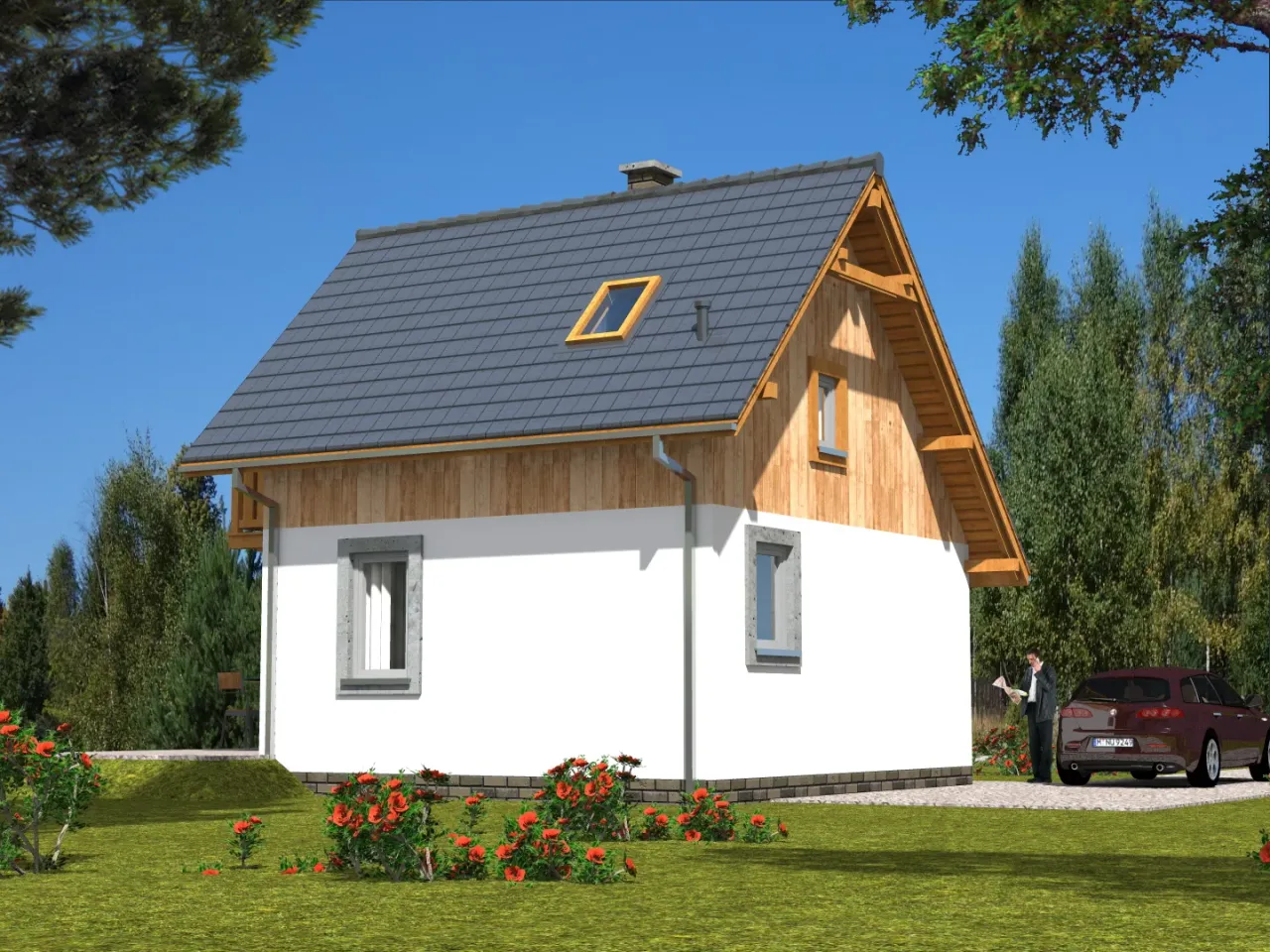 Kupując projekt w technologii murowanej powinieneś budować dom murowany. Zupełna zmiana technologii na szkieletową wymaga przeprojektowania całego budynku ( zmieniają się obciążenia, fundamenty, konstrukcja dachu). Wydamy zgodę na takie przeprojektowanie jednak wiążę się to z dużymi kosztami. Istnieją firmy wykonawcze, które podejmują się zmiany technologii budowy bezpłatnie przy skorzystaniu z ich usług wykonawczych. Zdarza się, że pracownia architektoniczna przygotowuje warianty konkretnego projektu przewidując także inne technologie. Prosimy o sprawdzenie czy istnieje poszukiwana wersja projektu, w zakładce - warianty projektu.