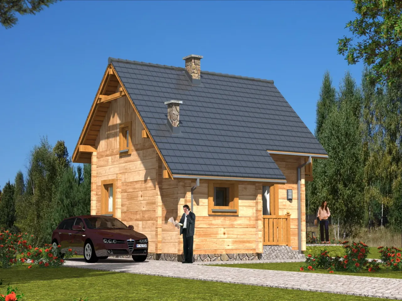 Wypełnij formularz i otrzymaj rysunki w pdf z dokładnymi wymiarami budynku i pomieszczeń (długość, szerokość, wysokość) dla projektu L-56 z bali