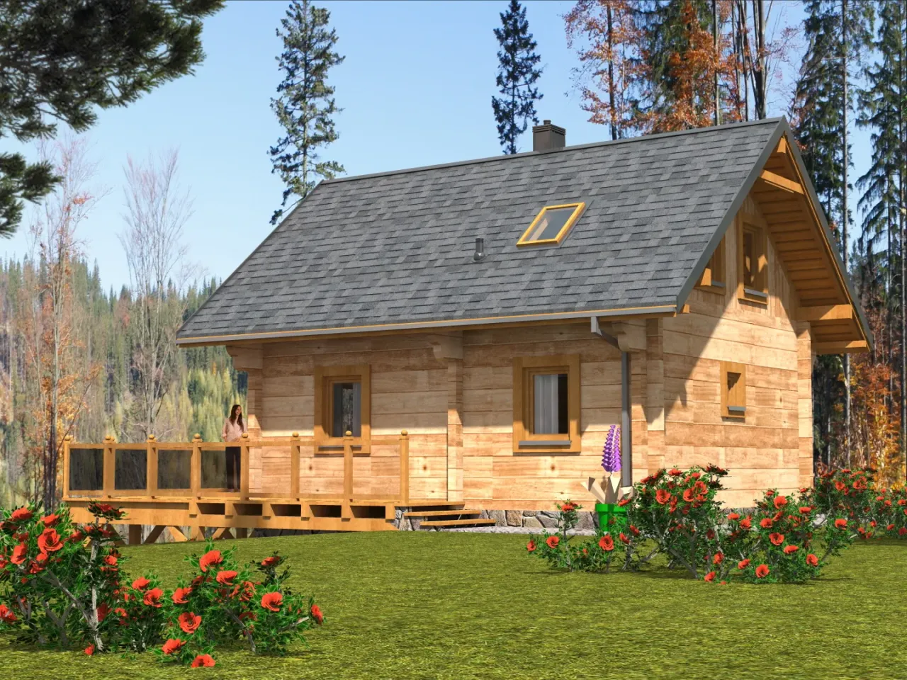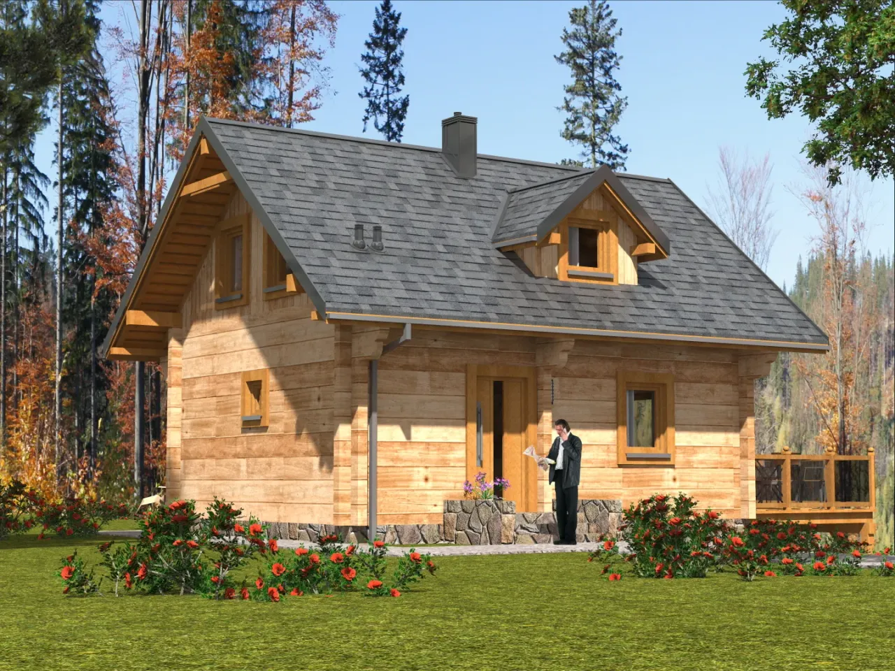 Wypełnij formularz i otrzymaj rysunki w pdf z dokładnymi wymiarami budynku i pomieszczeń (długość, szerokość, wysokość) dla projektu L-87 z bali
