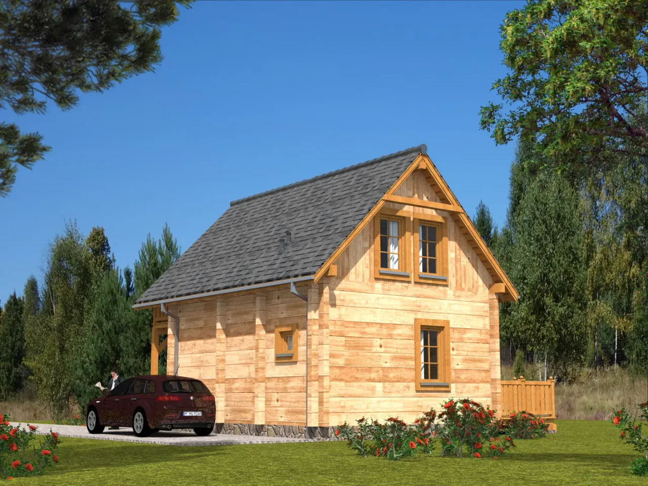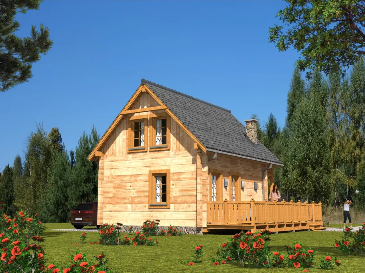 Naprawdę pojemny domek letniskowy. Myślę, że bez problemu pomieści moją rodzinę. Ma też bardzo ciekawe wykończenie- trochę w stylu górskim.