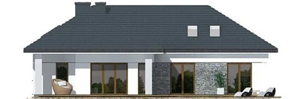 Laredo 2 to parterowy dom z możliwością adaptacji poddasza. Wewnątrz posiada dobrze doświetlone pokoje jak np. salon połączony z jadalnią i półotwartą kuchnią. Projekt zawiera zadaszony taras oraz garaż.