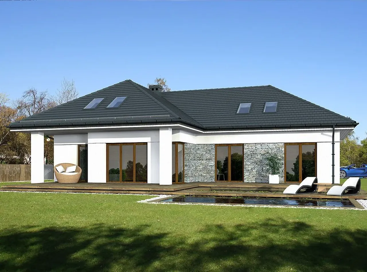 Projekt Laredo to propozycja parterowego domu z garażem dwustanowiskowym.